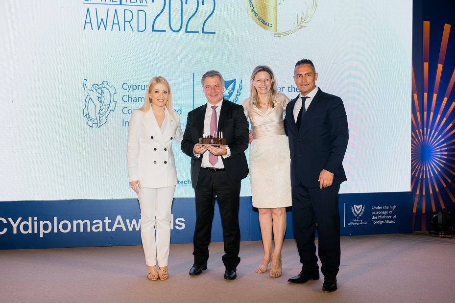 Ο John Christodoulou, Ιδρυτής του Φ.Ι. Yianis Christodoulou Foundation, φιλάνθρωπος και επιτυχημένος Κύπριος επιχειρηματίας, ήταν ο βασικός ομιλητής στην τελετή απονομής για τα «4α Διπλωματικά Βραβεία της Χρονιάς 2022» (4th Diplomat of the Year Award 2022), που διοργανώθηκε στο Προεδρικό Μέγαρο, ως αναγνώριση του ρόλου των Ξένων Διπλωματικών Αποστολών που είναι διαπιστευμένες στην Κύπρο. Η τελετή διοργανώθηκε από το Κυπριακό Εμπορικό και Βιομηχανικό Επιμελητήριο (ΚΕΒΕ) και τελούσε υπό την Υψηλή Αιγίδα του Υπουργού Εξωτερικών της Κύπρου κ. Ιωάννη Κασουλίδη. Στην τελετή παρευρέθηκαν η Πρόεδρος της Βουλής Αννίτα Δημητρίου, καθώς και άλλοι φορείς από τον πολιτικό, διπλωματικό και επιχειρηματικό τομέα, όπως ο Μιχάλης Χατζηπαντέλας, Υπουργός Υγείας, Κορνήλιος Κορνηλίου, Γενικός Διευθυντής του Υπουργείου Εξωτερικών και πολλοί άλλοι.
