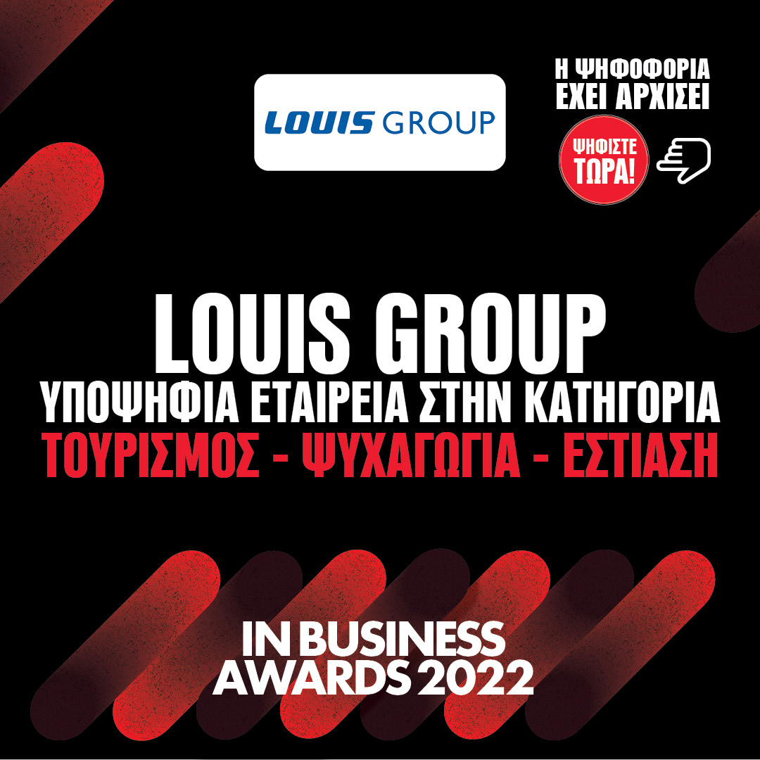 Με ιδιαίτερη χαρά ο Όμιλος Louis γνωστοποιεί ότι βρίσκεται ανάμεσα στις 5 υποψήφιες επιχειρήσεις στην κατηγορία Τουρισμός – Ψυχαγωγία – Εστίαση στα φετινά 15α ΙN Business Awards. Η υποψηφιότητα αυτή είναι ιδιαίτερα τιμητική για τον Όμιλο Louis, γιατί αντανακλά την επιτυχημένη πορεία του Ομίλου τόσο στην Κύπρο όσο και στο εξωτερικό, αλλά και τη συνετή διαχείριση που τον διατηρεί στην κορυφή.