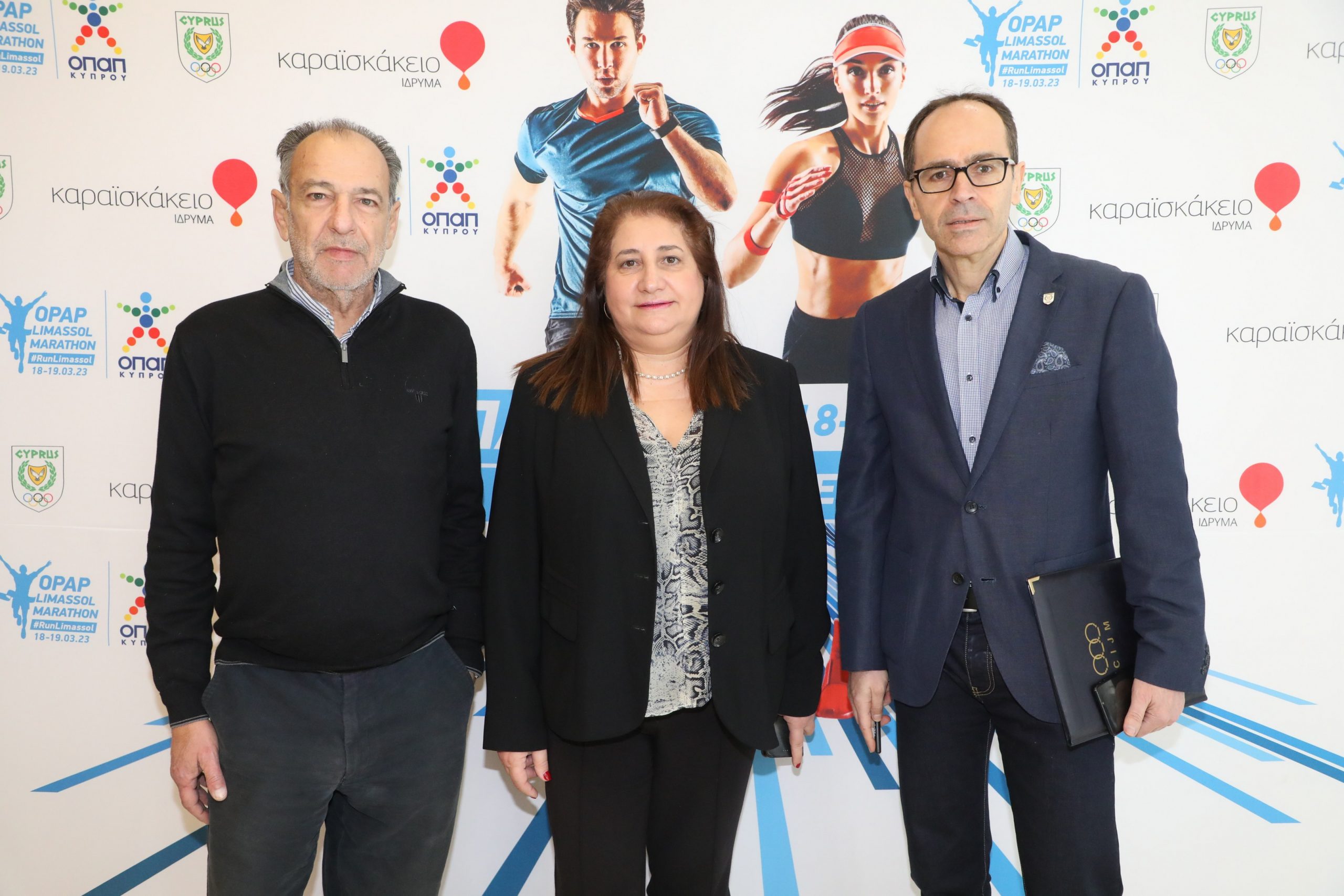 Καλωσορίζοντας στην αίθουσα «ΟΠΑΠ Ευ Αγωνίζεσθαι» του Ολυμπιακού Μεγάρου, ο Πρόεδρος της ΚΟΕ Γιώργος Χρυσοστόμου τόνισε ότι οι αξίες του Ολυμπισμού εκφράζονται αυθεντικά από τον αγώνα του Μαραθωνίου δρόμου και ενισχύονται περαιτέρω με την ευρύτερη κοινωνική διάσταση που έχει δώσει στη διεξαγωγή του ο ΟΠΑΠ Μαραθώνιος Λεμεσού.