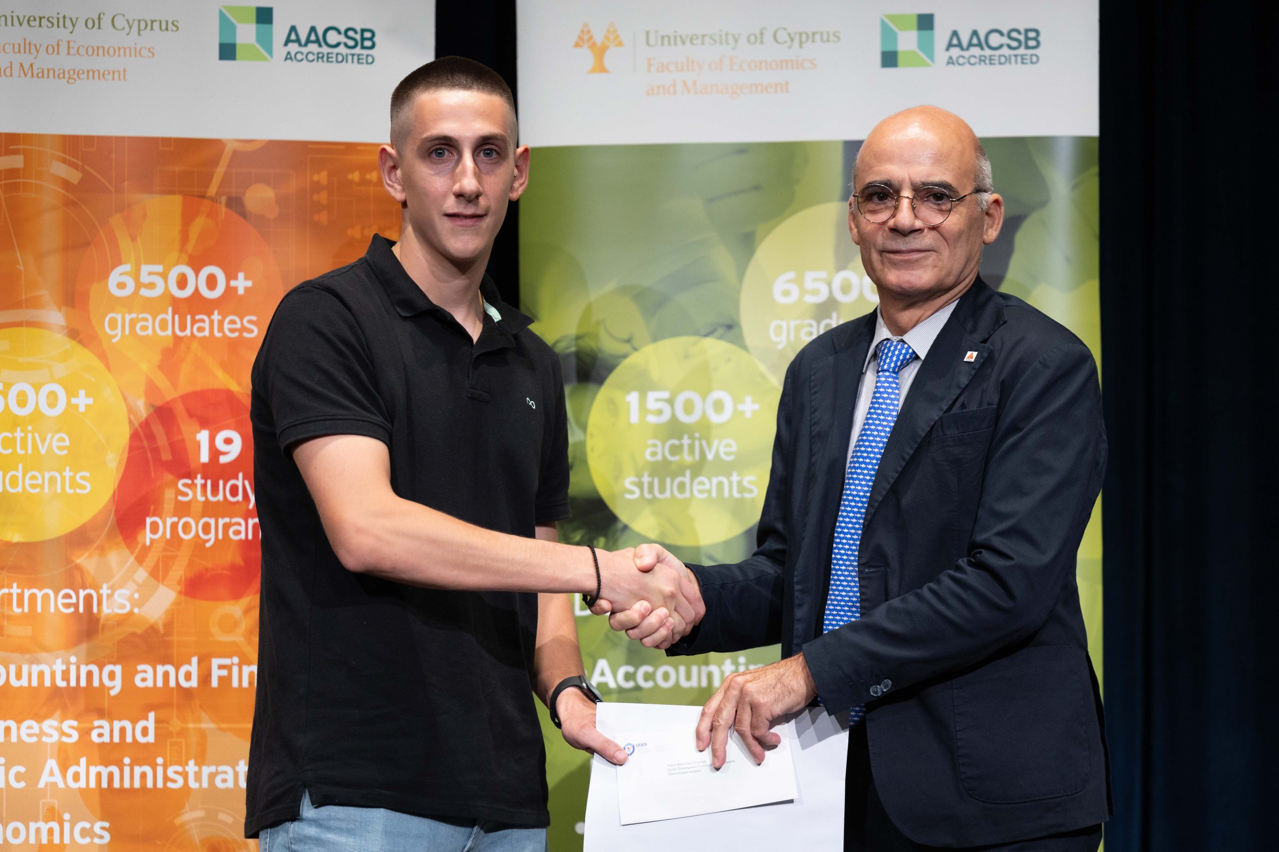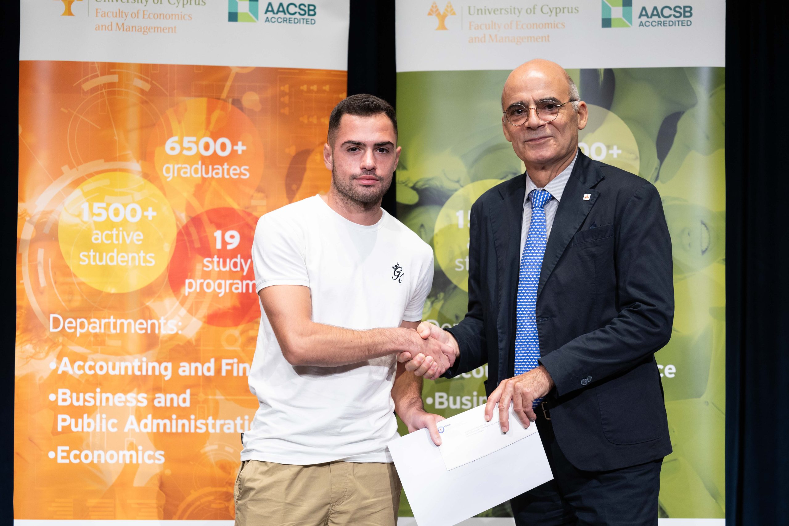 Πραγματοποιήθηκε την Πέμπτη 4 Ιουλίου, στο Πανεπιστήμιο Κύπρου (Καλλιπόλεως 75), η βράβευση των αρίστων της Σχολής Οικονομικών Επιστημών και Διοίκησης. Στην τελετή, ο Πρόεδρος του Διοικητικού Συμβουλίου του Συνδέσμου Ασφαλιστικών Εταιρειών Κύπρου (ΣΑΕΚ), Ευάγγελος Αναστασιάδης βράβευσε 3 αριστούχους φοιτητές του Τμήματος Οικονομικών για το ακαδημαϊκό έτος 2023-2024, παραδίδοντας βραβείο €500 στον καθένα, μια ευγενική χορηγία του ΣΑΕΚ.