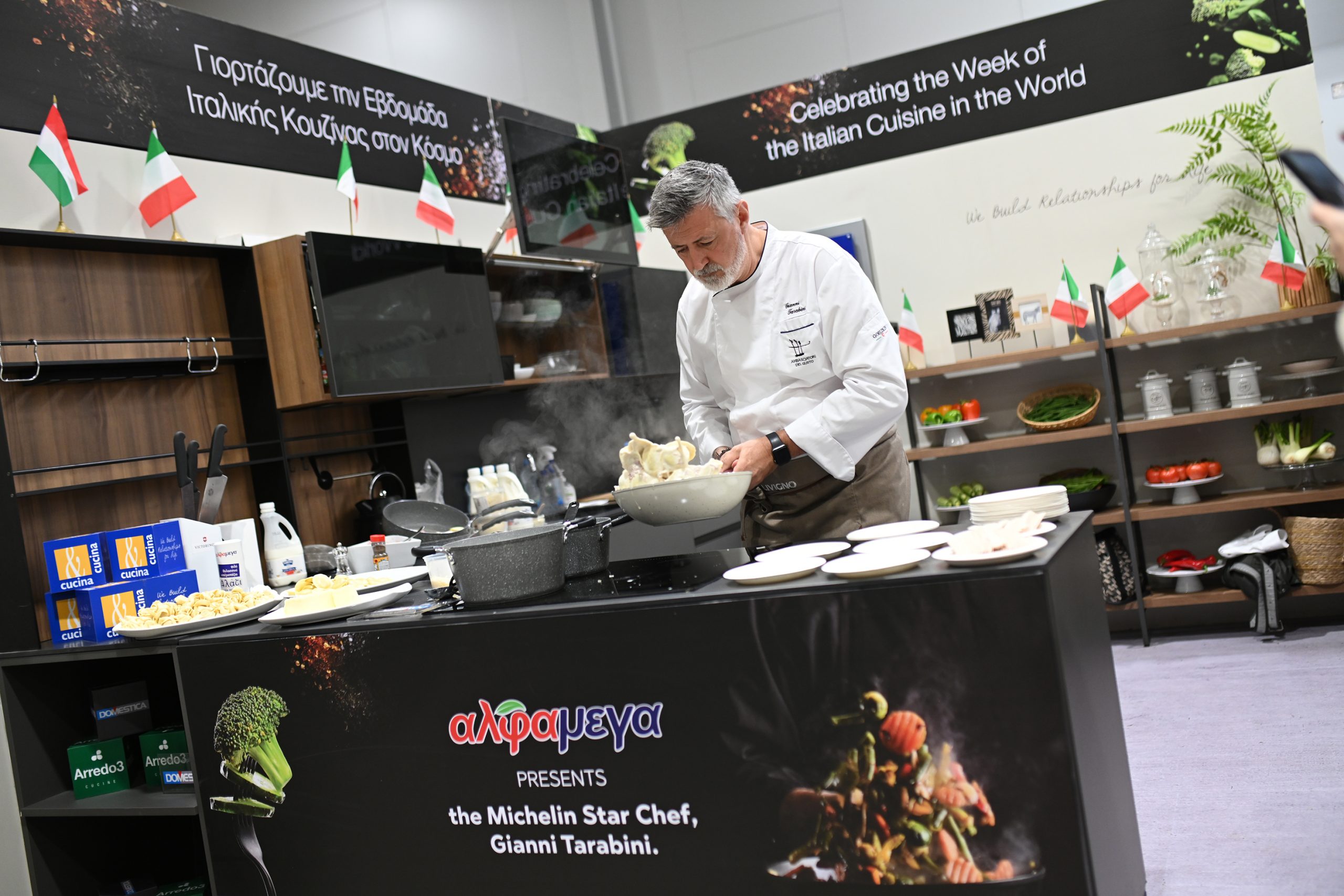Οι Υπεραγορές ΑΛΦΑΜΕΓΑ γιόρτασαν την «Εβδομάδα Ιταλικής Κουζίνας στον Κόσμο» με ένα μοναδικό live cooking show με τον βραβευμένο με αστέρι Michelin, Chef Gianni Tarabini. Το live cooking show πραγματοποιήθηκε το Σάββατο, 19 Νοεμβρίου 2022, από τις 12:00 μέχρι τις 14:00, στην κουζίνα της Υπεραγοράς ΑΛΦΑΜΕΓΑ στην Έγκωμη. Κατά τη διάρκεια της εκδήλωσης το κοινό είχε τη μοναδική ευκαιρία να παρακολουθήσει από κοντά τον Ιταλό chef να μαγειρεύει και να δοκιμάσει το πιάτο που ετοίμασε.