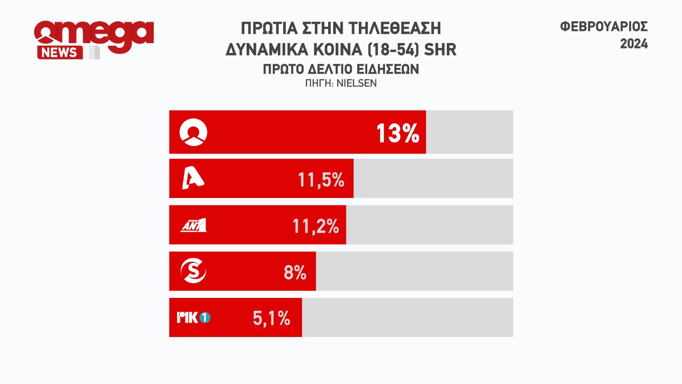 OMEGA CHANNEL: Πρώτο κανάλι σε τηλεθέαση prime time δυναμικά κοινά (18-54) Φεβρουάριος 2024