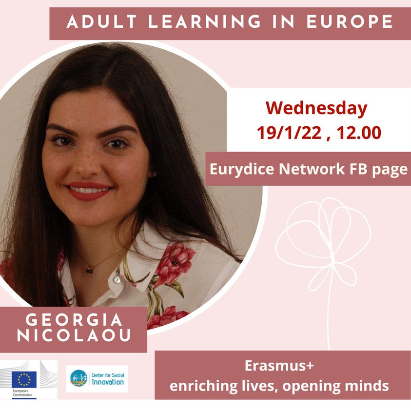 Η υπεύθυνη του έργου μας, Γεωργία Νικολάου, επιλέχθηκε ως Πρέσβειρα νέων της EPALE για να μιλήσει μαζί με άλλους ειδικούς για την εκπαίδευση ενηλίκων για να μιλήσει για την εκπαίδευση ενηλίκων στην Ευρώπη και τον ρόλο που πρέπει να διαδραματίσει η EPALE – Adult Learning στην Ευρώπη σε αυτόν τον τομέα.