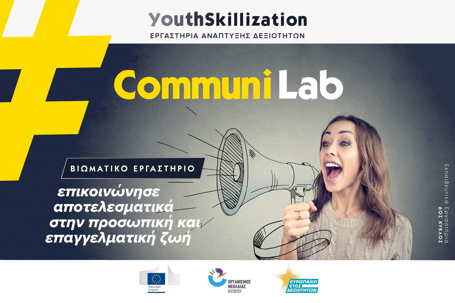 Ακριβώς αυτό στοχεύουν να πετύχουν τα επτά βιωματικά εργαστήρια του ΟΝΕΚ, με τίτλο #CommuniLAB – Επικοινώνησε Αποτελεσματικά στην Προσωπική και Επαγγελματική Ζωή, που εντάσσονται στο πλαίσιο του Ευρωπαϊκού Έτους Δεξιοτήτων και της πρωτοβουλίας «YouthSkillization» και θα πραγματοποιηθούν στα Πολύκεντρα Νεολαίας σε διάφορες πόλεις και περιοχές της Κύπρου. Να δώσουν, δηλαδή, τις τεχνικές που χρειάζεται κανείς για να ενισχύσει τις δεξιότητες επικοινωνίας του σε προσωπικό και επαγγελματικό επίπεδο.