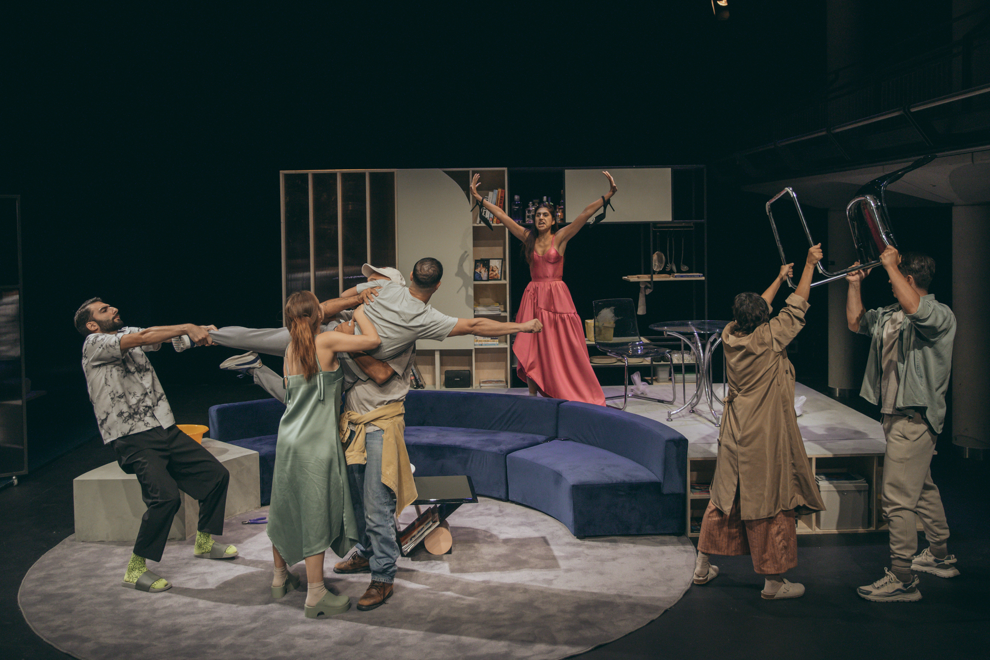 Ο Γιάννης Παρασκευόπουλος υπηρετεί τον αφοπλιστικά άμεσο λόγο του συγγραφέα, αναδεικνύοντας τη διεισδυτική κοινωνική του ματιά. Μαζί του συμπράττει μια δυναμική ομάδα ηθοποιών, που φωτίζουν όλες τις διαστάσεις των απολαυστικών χαρακτήρων.