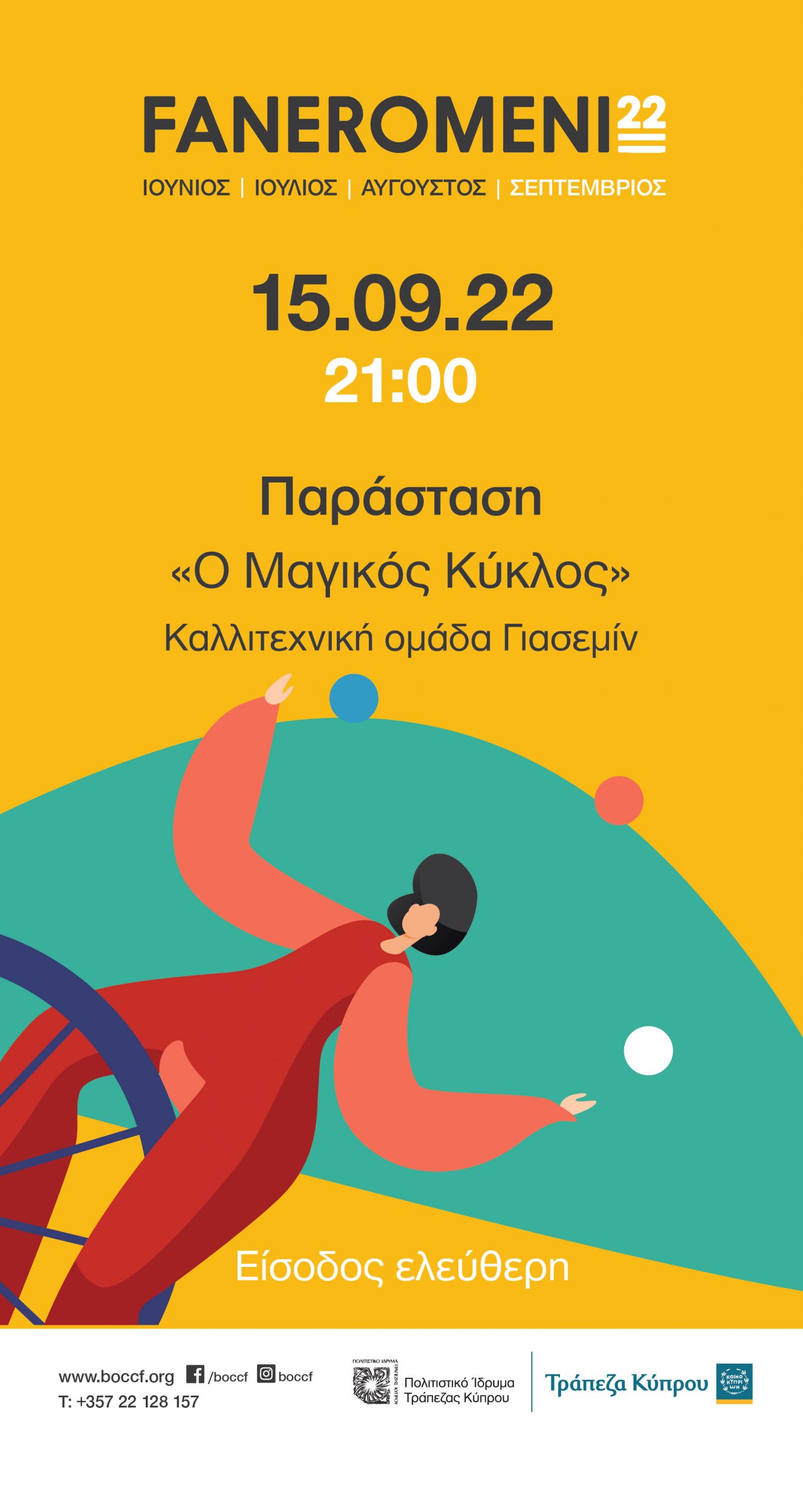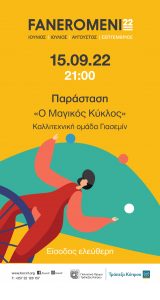 H αυλαία του Φεστιβάλ Τεχνών FANEROMENI22, κλείνει την Πέμπτη 15 Σεπτεμβρίου με την παράσταση «Ο Μαγικός Κύκλος», που εμπνέεται από τον μοναδικό κόσμο του τσίρκου.