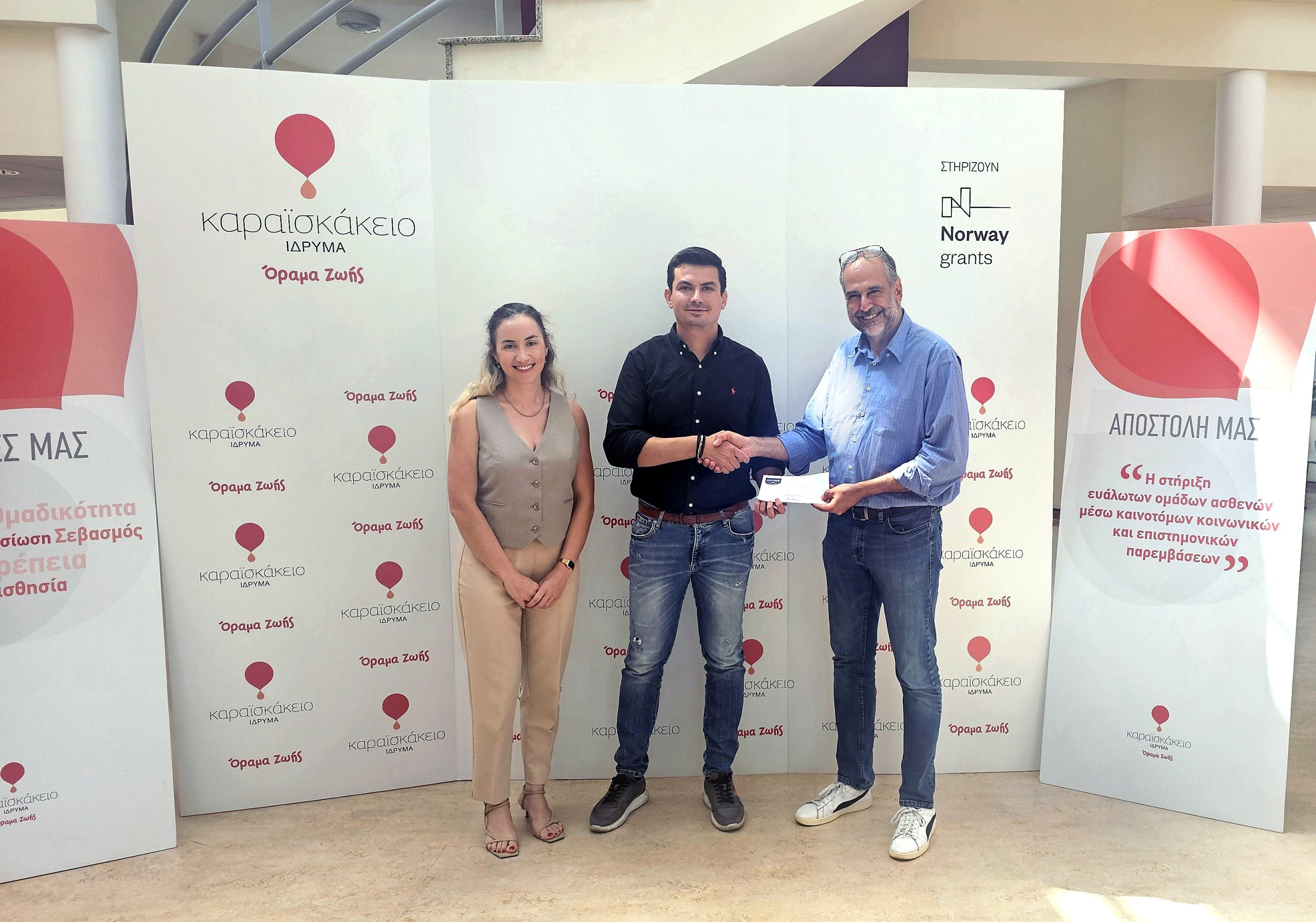 Η παράδοση της επιταγής στο Καραϊσκάκειο έγινε την Πέμπτη 29 Αυγούστου, στις εγκαταστάσεις του Ιδρύματος, στο πλαίσιο εκστρατείας που πραγματοποιήθηκε από κοινού με τις Υπεραγορές Σκλαβενίτης, από τις 6 μέχρι τις 19 Ιουνίου. Στόχος της συγκεκριμένης ενέργειας, ήταν η στήριξη της προσπάθειας που καταβάλλεται για αντιμετώπιση του παιδικού καρκίνου.