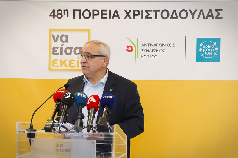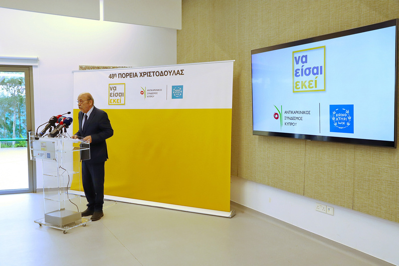 Σε διάσκεψη Τύπου για την εξαγγελία της Πορείας Χριστοδούλας ο Πρόεδρος του Δ.Σ. του Αντικαρκινικού Συνδέσμου Κύπρου Δρ. Αδάμος Αδάμου, τόνισε ότι η εξέλιξη της ιατρικής, η πρόληψη και έγκαιρη διάγνωση, μας επιτρέπουν, πλέον, να απορρίπτουμε όρους όπως «ανίατη ασθένεια» ή «επάρατη νόσος» όταν μιλάμε για τον καρκίνο. «Πολλές μορφές καρκίνου μπορούν να ιαθούν και οι ασθενείς, αν και θα διανύσουν ένα δύσκολο ταξίδι, αυτό που χρειάζονται είναι να είμαστε εκεί, δίπλα τους, με σεβασμό, αγάπη και φροντίδα. Γι’ αυτόν τον λόγο φέτος αλλάζουν τα μηνύματα της εκστρατείας μας. Γι’ αυτό καλούμε όλους να είναι εκεί! Να είναι εκεί στην Πορεία Χριστοδούλας. Να είναι εκεί δίπλα στους ασθενείς με καρκίνο. Να είναι εκεί για τους Επαγγελματίες Υγείας που προσφέρουν άοκνα πολύτιμες υπηρεσίες στήριξης. Να είναι εκεί, μαζί μας, στηρίζοντας το φιλανθρωπικό έργο του Αντικαρκινικού Συνδέσμου Κύπρου».