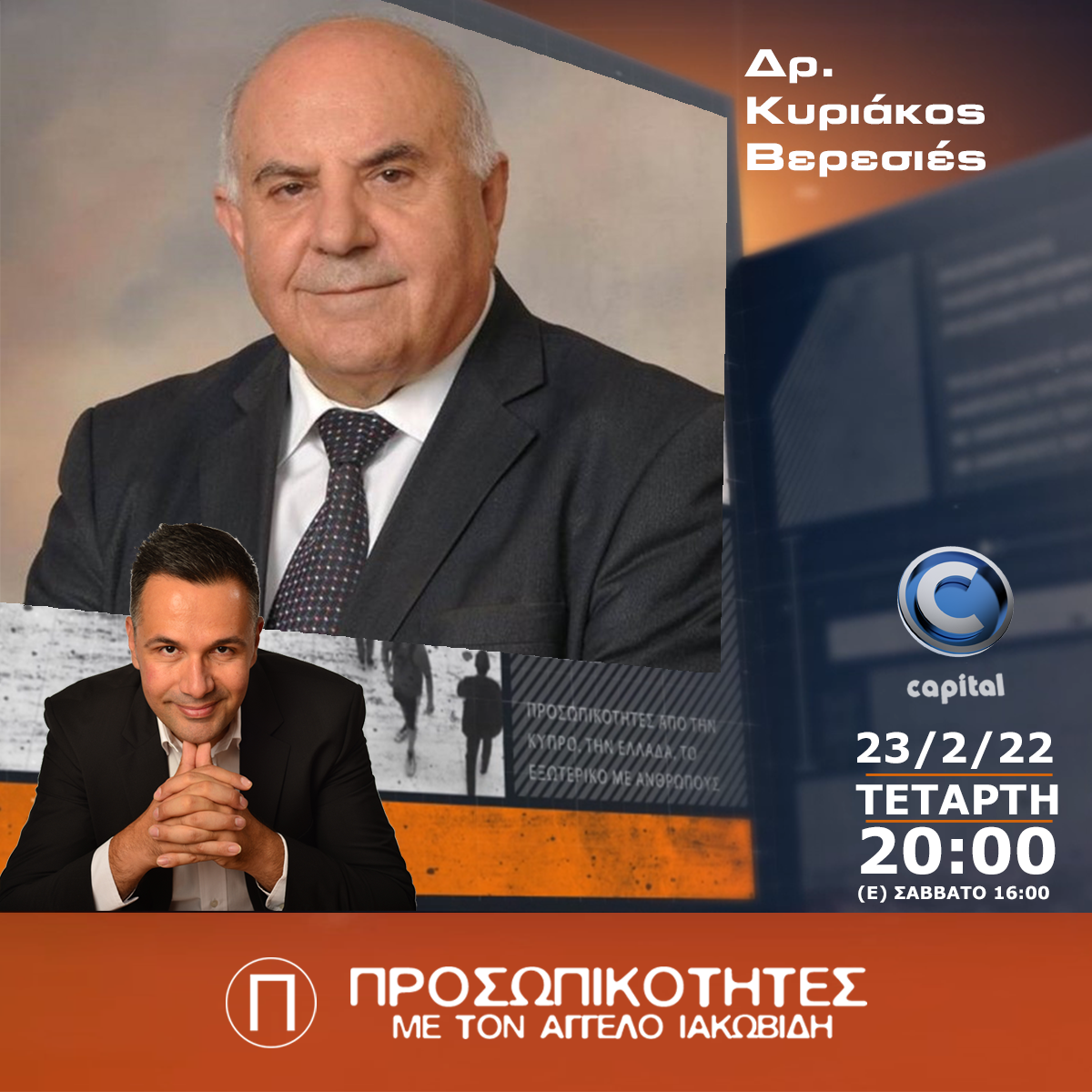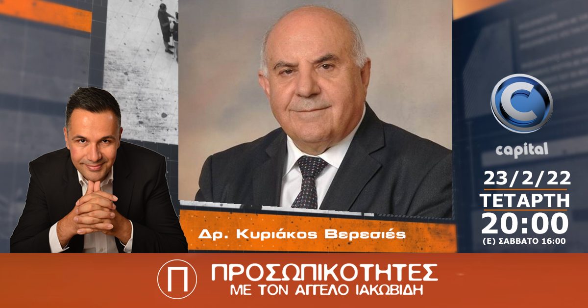 Ο Δρ. Κυριάκος Βερεσιές, νευρολόγος – ψυχίατρος φιλοξενείται στην εκπομπή Προσωπικότητες με τον Άγγελο Ιακωβίδη αυτή την Τετάρτη 23/2/22 στις 8 το βράδυ στο Capital