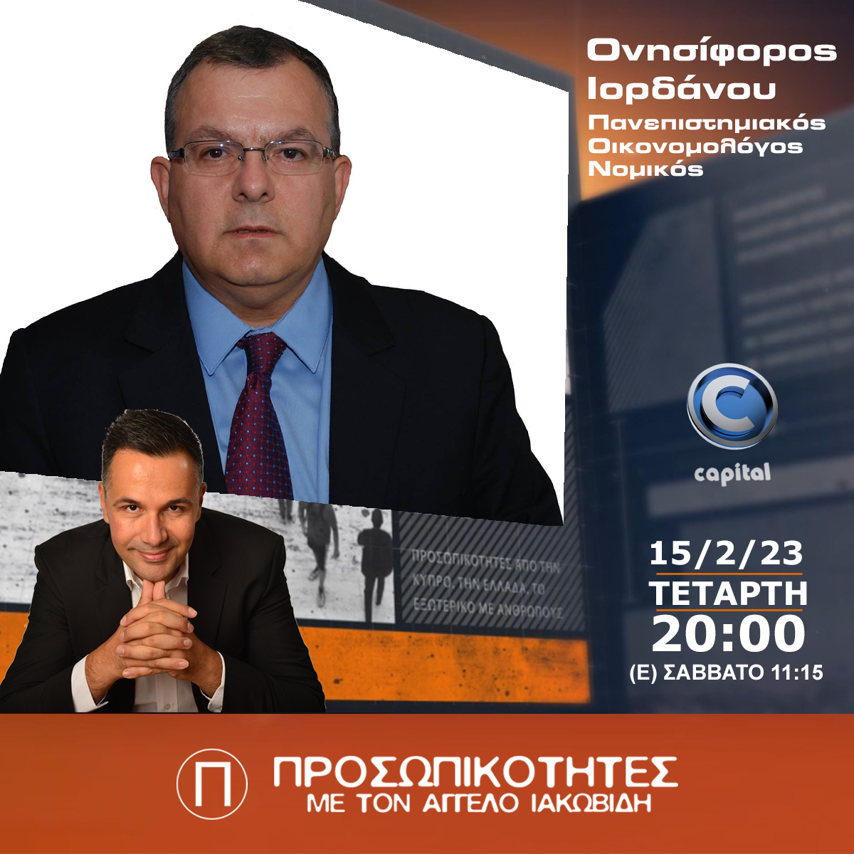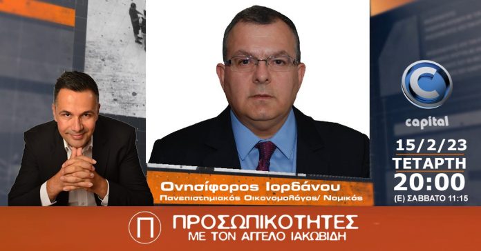 Ο Ονησίφορος Ιορδάνου, Πανεπιστημιακός, Οικονομολόγος και Νομικός, φιλοξενείται στην εκπομπή Προσωπικότητες με τον Άγγελο Ιακωβίδη αυτή την Τετάρτη 15/2/23 στις 8 το βράδυ στο Capital. Η εκπομπή μεταδίδεται και σε επανάληψη κάθε Σάββατο στις 11:15 το πρωί.