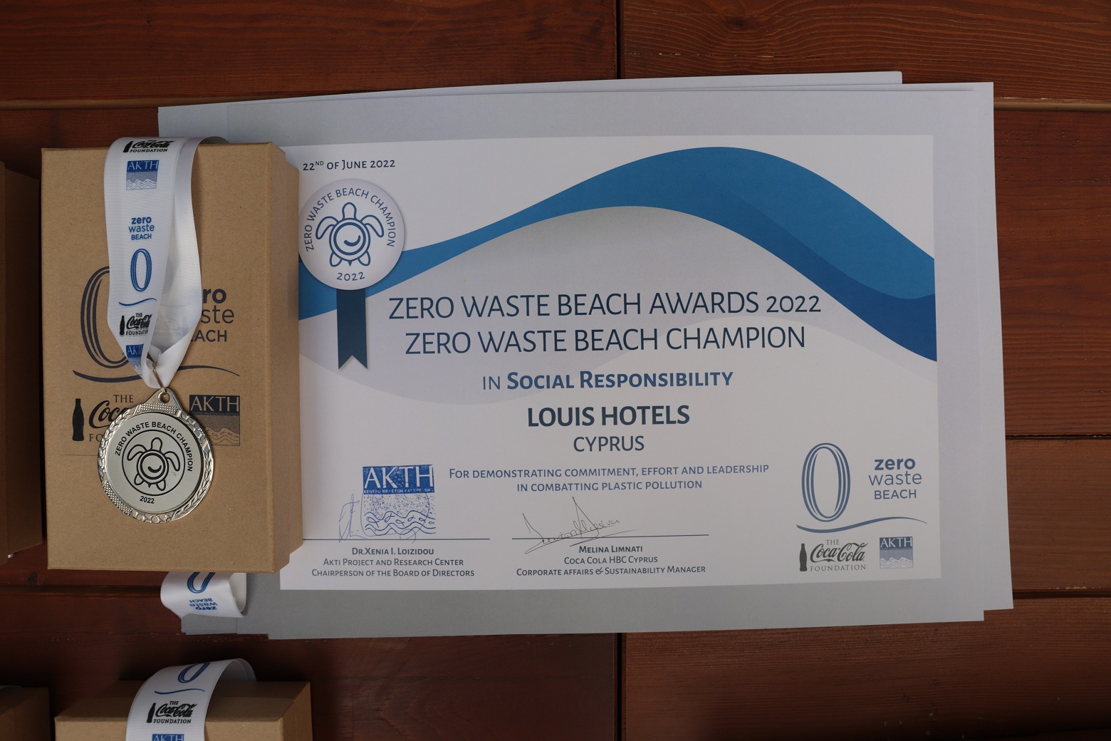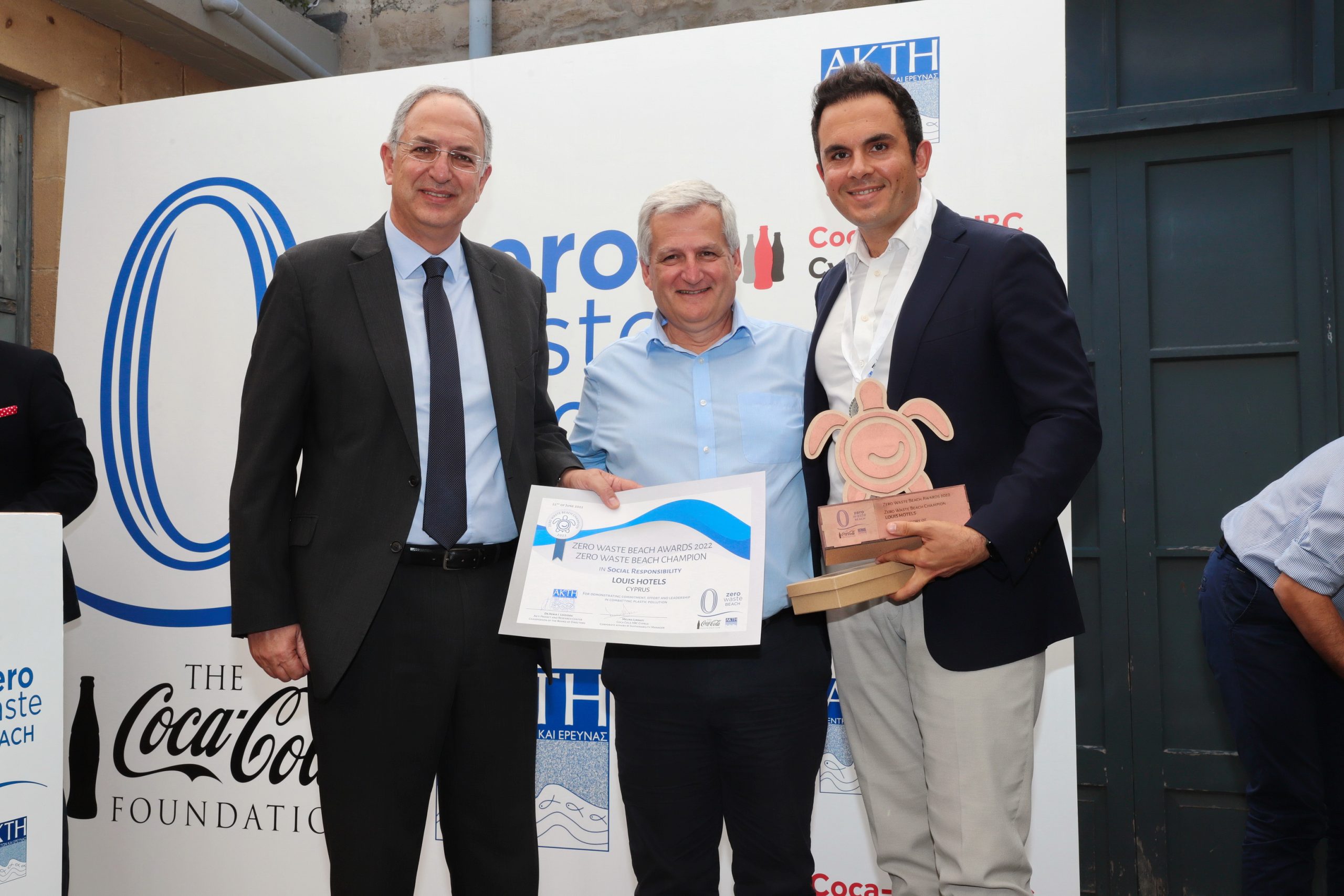 Η δεύτερη διάκριση ήρθε στις 22 Ιουνίου στο πλαίσιο του καινοτόμου προγράμματος «Zero Waste Beach 2022», που υλοποιεί το Κέντρο Μελετών και Έρευνας ΑΚΤΗ, με την υποστήριξη του ιδρύματος Coca-Cola Foundation. Η Louis Hotels μαζί με άλλες οκτώ παράκτιες επιχειρήσεις ξεχώρισαν ανάμεσα σε 320 συμμετοχές στον φετινό θεσμό, στις κατηγορίες της Περιβαλλοντικής Υπευθυνότητας, της Βιωσιμότητας, της Καινοτομίας και της Κοινωνικής Ευθύνης. Πιο συγκεκριμένα, η Louis Hotels έλαβε το φετινό βραβείο για μεγάλες επιχειρήσεις στην κατηγορία Κοινωνική Ευθύνη. Το πρόγραμμα «Zero Waste Beach» αποσκοπεί στην κινητοποίηση όλων των εμπλεκομένων φορέων και του κοινού στη μάχη κατά της θαλάσσιας πλαστικής ρύπανσης. Από το 2018 μέχρι και σήμερα επιτεύχθηκε η συγκέντρωση περίπου 2.547 τόνων ανακυκλώσιμων υλικών.