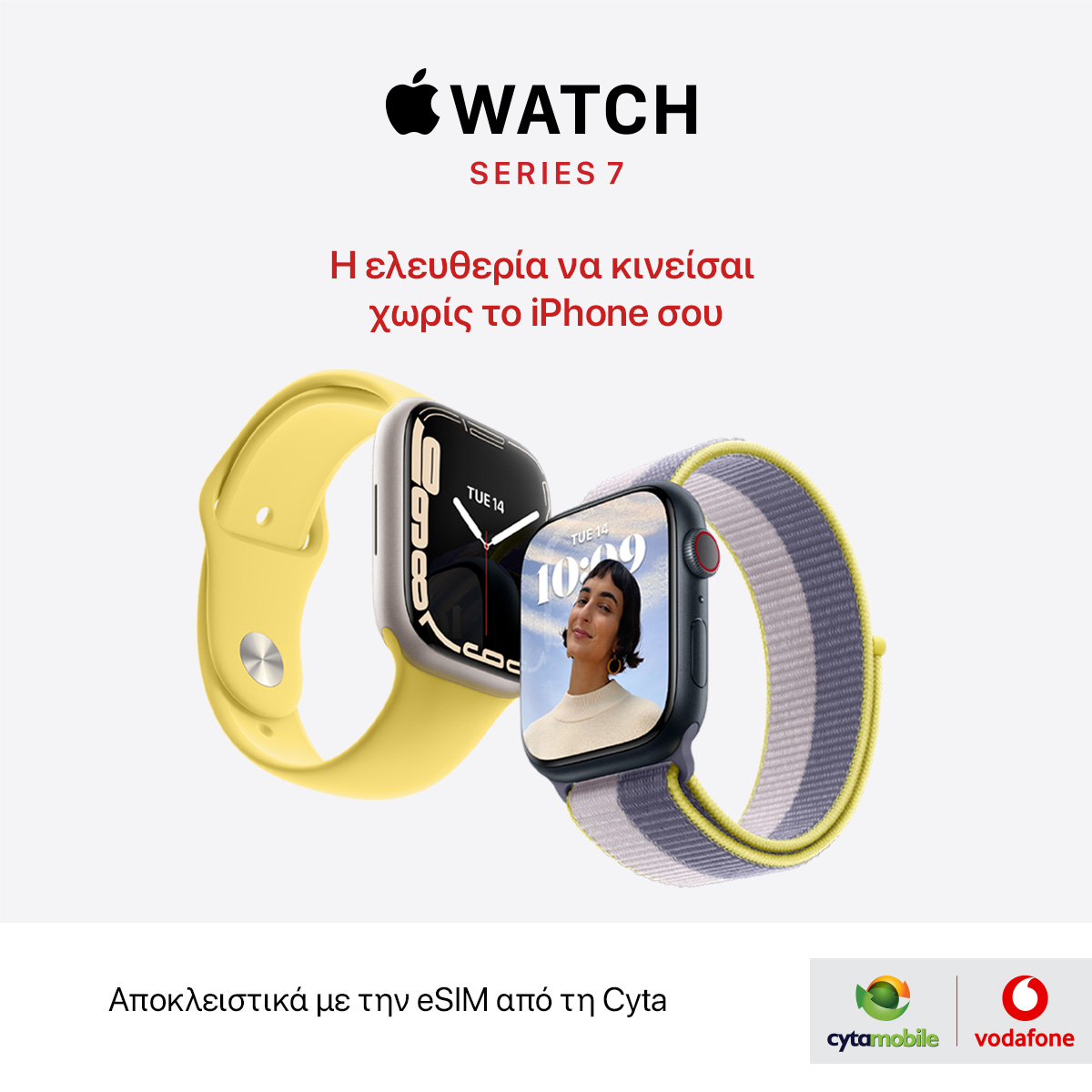 Από τις 17 Ιουνίου, οι πελάτες συμβολαίου της Cytamobile-Vodafone μπορούν να αποκτήσουν το καινούργιο iPhone σε συνδυασμό με τη συσκευή Apple Watch με Cellular και να επωφεληθούν έκπτωσης μέχρι και €150. Εναλλακτικά, μπορούν να αγοράσουν μόνο το Apple Watch με Cellular με ευκολίες πληρωμής και έκπτωση €30.