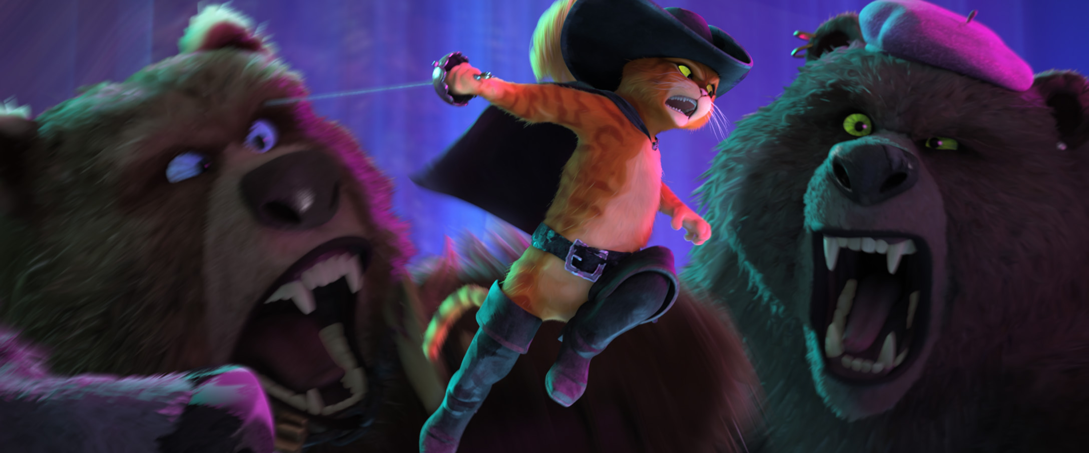 Στην προσπάθειά τους, ο Γάτος και η Κίτι θα έχουν τη βοήθεια -τόσα ήξεραν…- από ένα φλύαρο, αμείλικτα χαρούμενο κοπρόσκυλο, τον Πέρο. Μαζί, η τριάδα των ηρώων θα πρέπει να καταφέρει να ξεγλιστρήσει από τη Χρυσομαλλούσα και τις Τρεις Αρκούδες, τον ‘Big’ Τζακ Χόρνερ, και τον Κακό Λύκο, τον τρομακτικό κυνηγό επικηρυγμένων.