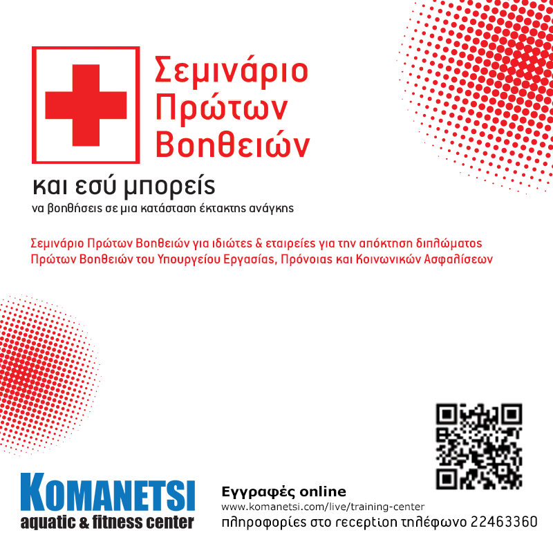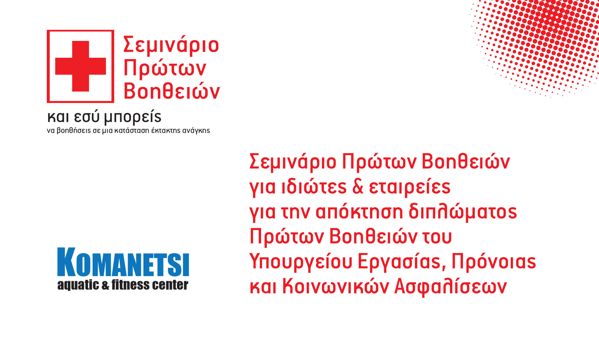 Το Komanetsi Training Center διοργανώνει σεμινάρια Πρώτων Βοηθειών με τίτλο «Πρώτες Βοήθειες στην Εργασία – Επείγοντα Περιστατικά» για την απόκτηση διπλώματος Πρώτων Βοηθειών .