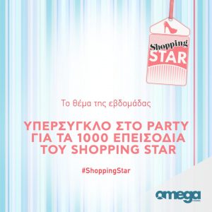 Αυτή την εβδομάδα το «Shopping Star», το απόλυτο παιχνίδι μόδας, η απογευματινή συνήθεια, που έγινε λατρεία, με παρουσιάστρια τη fashion expert Βίκυ Καγιά και πρωταγωνίστριες γυναίκες όλων των ηλικιών, αναλογιών, επαγγελμάτων και στυλ, γιορτάζει τα 1000 επεισόδια με τον δικό του fashion τρόπο!