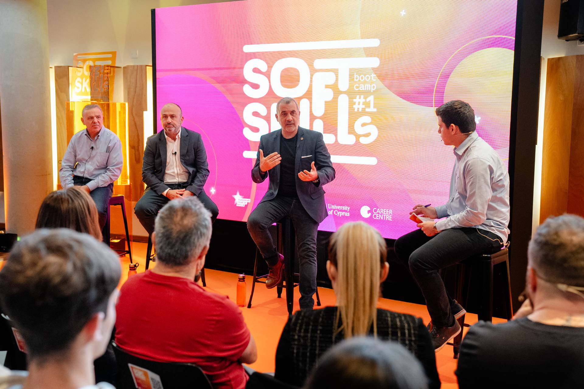 Με μεγάλη επιτυχία πραγματοποιήθηκε το πρώτο «Soft Skills Bootcamp» στο Πανεπιστήμιο Κύπρου, ένα Πρόγραμμα σχεδιασμένο από το Κέντρο Σταδιοδρομίας του Πανεπιστημίου Κύπρου σε συνεργασία με το Europe Direct Λευκωσίας – Πανεπιστημίου Κύπρου, στο πλαίσιο του Ευρωπαϊκού Έτους Δεξιοτήτων 2023*. Σε μια κατάμεστη αίθουσα, 250 φοιτητές/τριες, απόφοιτοι και επαγγελματίες, παρακολούθησαν με ενθουσιασμό ομιλίες, συζητήσεις και εργαστήρια για το πώς διαμορφώνεται το μέλλον, για την τεχνητή νοημοσύνη και τις κρίσιμες δεξιότητες της νέας εποχής, όπως η ηγεσία, η κριτική και αναλυτική σκέψη και η επικοινωνία.