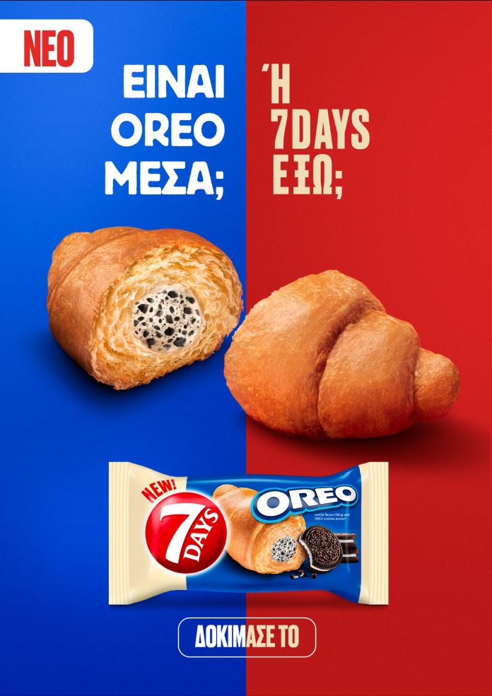 Το 7DAYS, το κορυφαίο brand συσκευασμένων κρουασάν, παρουσιάζει τη νέα, απολαυστική συνεργασία με το Oreo, το πιο αγαπημένο μπισκότο στον κόσμο, δημιουργώντας ένα μοναδικό προϊόν που έρχεται να «σπάσει τη ρουτίνα» της καθημερινότητας.