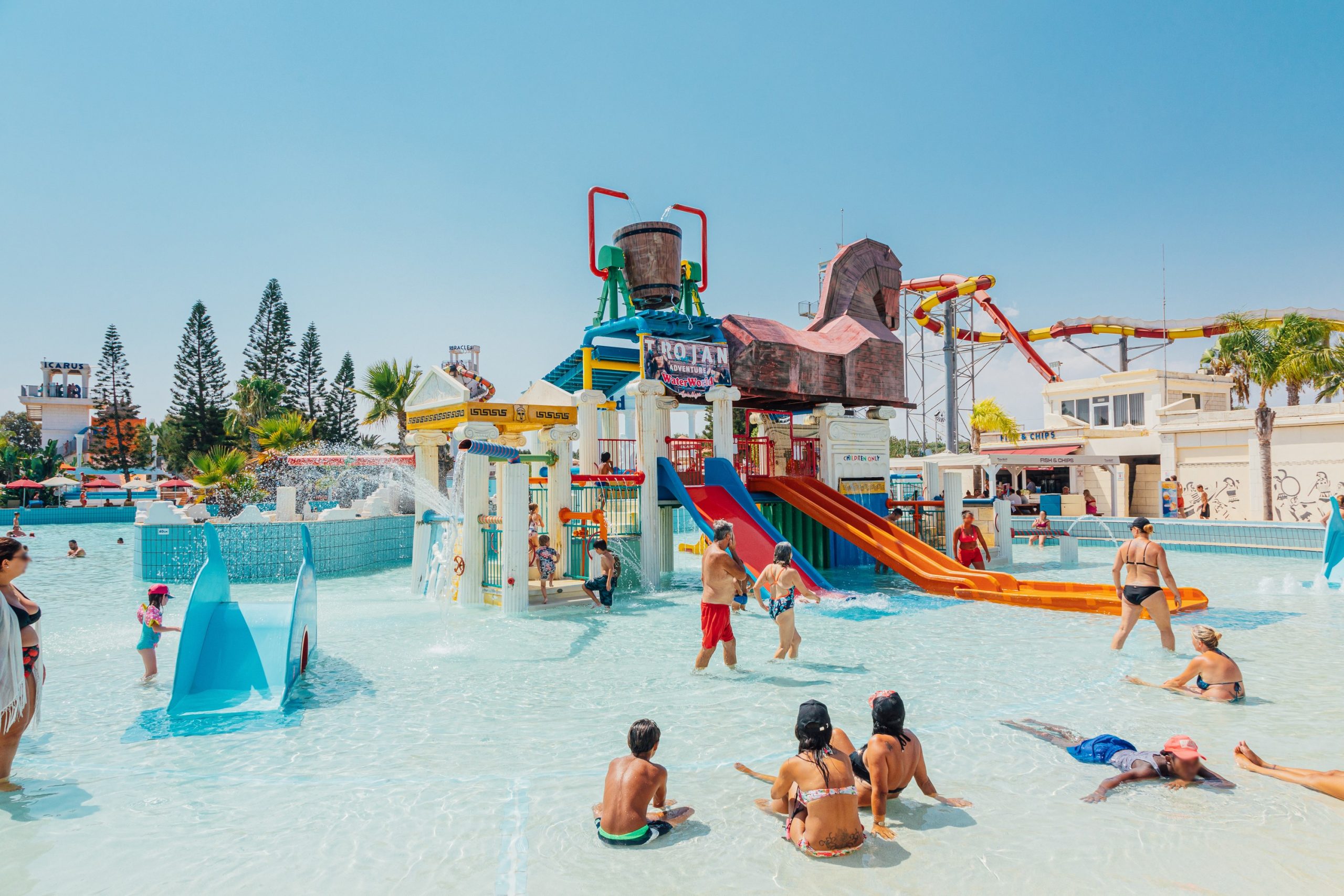 Το WaterWorld WaterPark στην Αγία Νάπα αποτελεί ένα θεματικό πάρκο που προσελκύει άτομα όλων των ηλικιών. Αυτό που το καθιστά μοναδικό και το κάνει να ξεχωρίζει από άλλα θεματικά πάρκα, είναι η ισχυρή του σύνδεση με την αρχαία Ελληνική μυθολογία. Μεγαλοπρεπείς κίονες, αγάλματα, σιντριβάνια και πλατείες, συνθέτουν όλο το υδροπάρκο εξιστορώντας το δικό τους μυθολογικό παραμύθι. Κάποια από τα παιχνίδια που το αποτελούν είναι: ‘Poseidon’s Wave Pool’, ‘Drop to Atlantis’, ‘Apollo’s Plunge’, ‘Fall of Icarus’ (η πρώτη Boomerango νεροτσουλήθρα παγκοσμίως!), ‘Quest of Heracles’, ‘Aeolos Whirlpool’, κα.