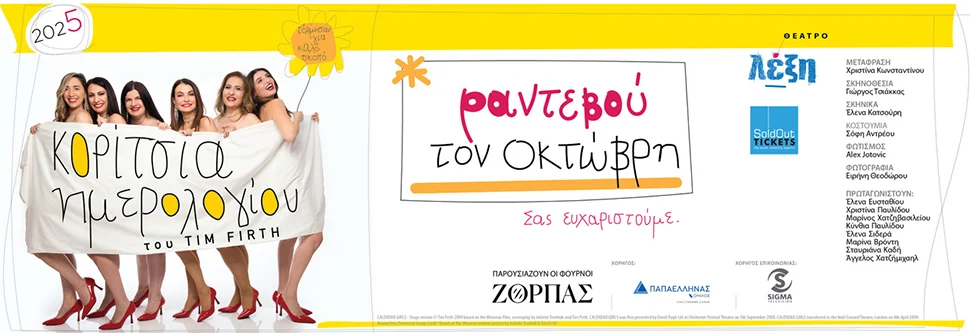 Πράγματι, τα Κορίτσια Ημερολογίου μας χάρισαν μια πολύ μεγάλη επιτυχία και ευχαριστούμε τον κόσμο για την τεράστια ανταπόκριση. Επειδή ακόμη υπάρχουν θεατές που ζητούν την παράσταση, θα επανέλθουμε με νέες παραστάσεις από τις 3 Οκτωβρίου, ξεκινώντας από το Δημοτικό Θέατρο Λατσιών και στη συνέχεια σε όλες τις πόλεις.
