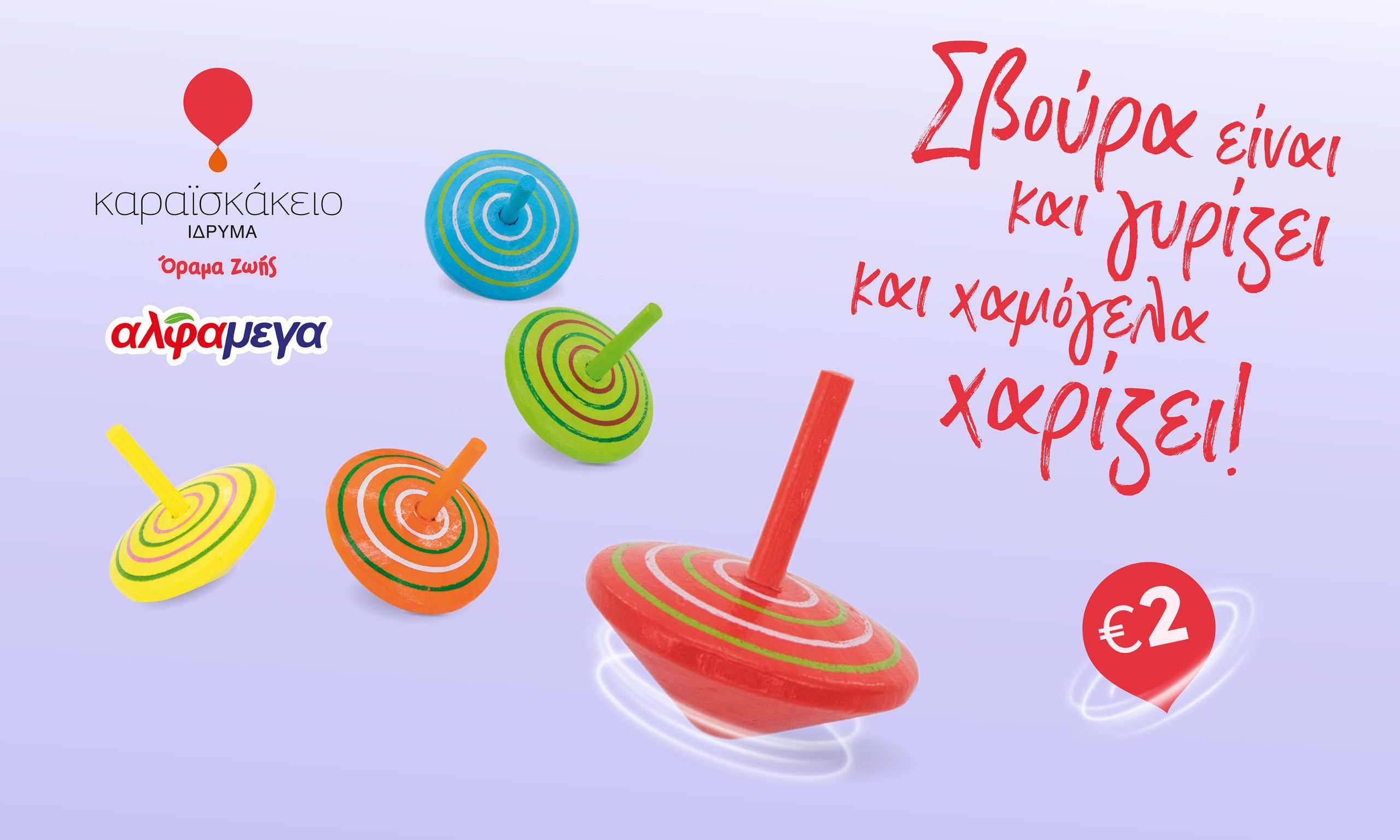 Αγόρασε σήμερα την «σβούρα ζωής» στηρίζoντας την προσπάθεια των Υπεραγορών ΑΛΦΑΜΕΓΑ και του Καραϊσκάκειου Ιδρύματος…για ένα κόσμο γεμάτο παιδικά χαμόγελα!