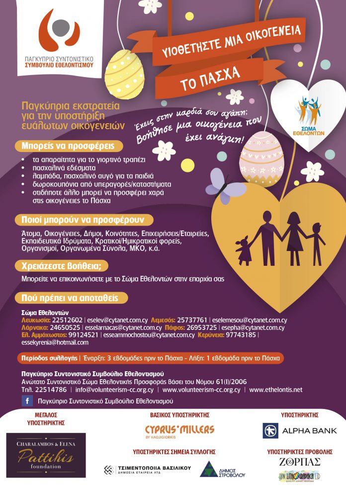 Ο Δήμος Στροβόλου υποστηρίζει την εκστρατεία του Παγκύπριου Συντονιστικού Συμβουλίου Εθελοντισμού (ΠΣΣΕ) «Υιοθετήστε μια οικογένεια το Πάσχα», συλλέγοντας δώρα για παιδιά των οικογενειών που υποστηρίζονται από το ΠΣΣΕ.