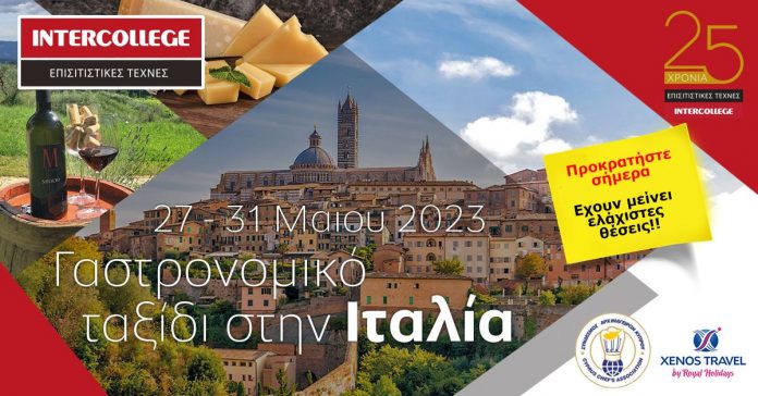 Στα πλαίσια των εορτασμών των 25χρονων τα Προγράμματα Επισιτιστικών Τεχνών του Intercollege διοργανώνουν γαστρονομικό ταξίδι στην Ιταλία στη γνωστή περιοχή «Τοσκάνης».