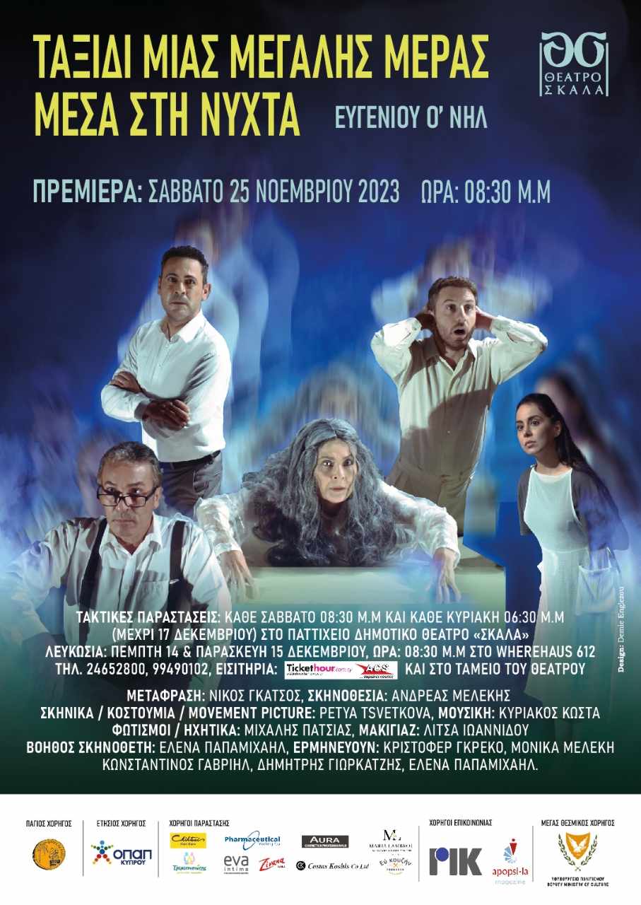 Το θέατρο «ΣΚΑΛΑ» θα ολοκληρώσει τις παραγωγές του για το 2023 με το αριστούργημα του νομπελίστα συγγραφέα Ευγένιου Ο’ Νήλ «Ταξίδι μιας μεγάλης μέρας μέσα στη νύχτα» και με το οποίο θα δώσει επίσημη πρεμιέρα το Σάββατο 25 Νοεμβρίου 2023, ώρα 08:30 μ.μ στο Παττίχειο Δημοτικό θέατρο «ΣΚΑΛΑ».