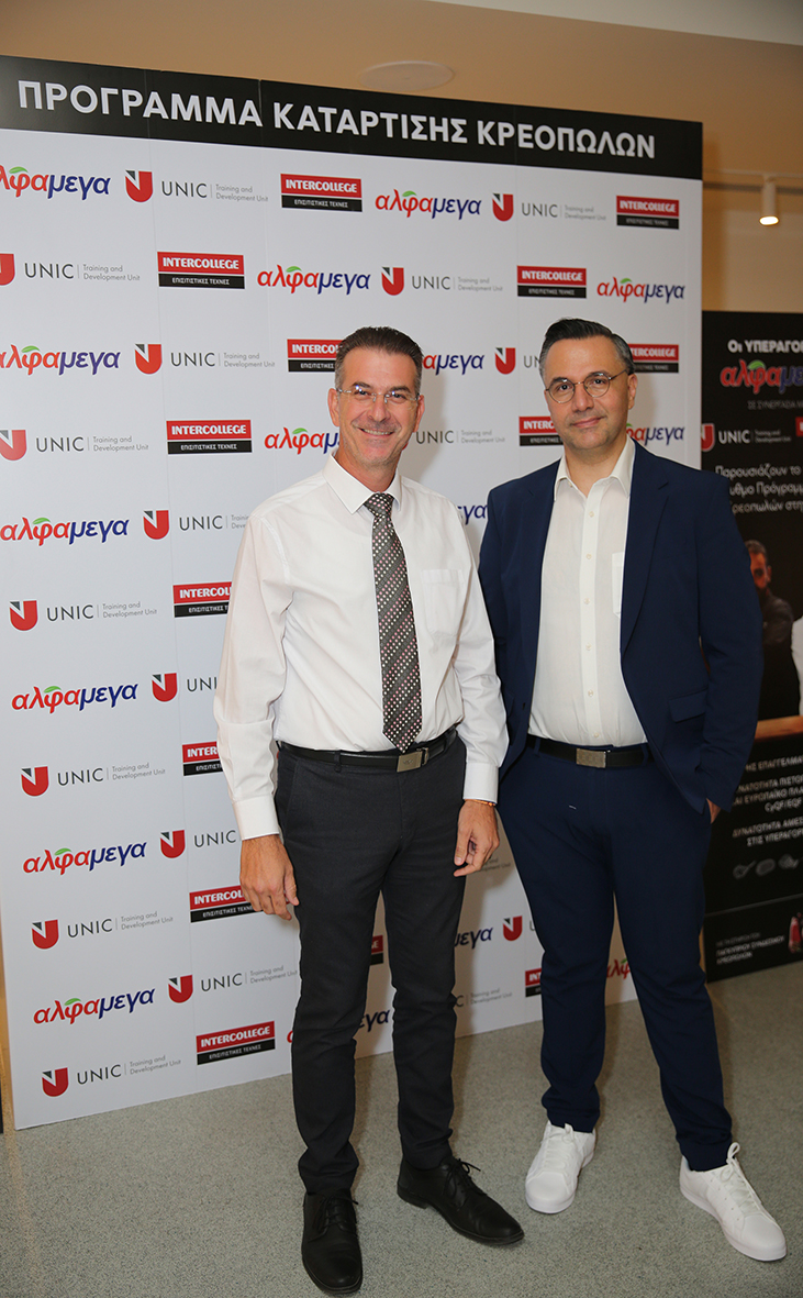 Την Τρίτη, 30 Ιουλίου 2024 ολοκληρώθηκε, με επιτυχία και σε πανηγυρικό κλίμα, η Τελετή Αποφοίτησης του τρίτου κύκλου του Προγράμματος Κατάρτισης Κρεοπωλών, που αποτελεί πρωτοπόρο πρωτοβουλία των Υπεραγορών ΑΛΦΑΜΕΓΑ, των προγραμμάτων Επισιτιστικών Τεχνών του Intercollege και της Μονάδας Κατάρτισης και Ανάπτυξης του Πανεπιστημίου Λευκωσίας.