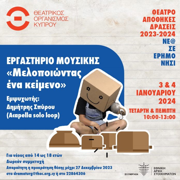 Οι Δράσεις «Νέ@ σε έρημο νησί» του ΘΟΚ διοργανώνουν διήμερο εργαστήριο μουσικής που απευθύνεται σε εφήβους, με τίτλο «Μελοποιώντας ένα κείμενο».