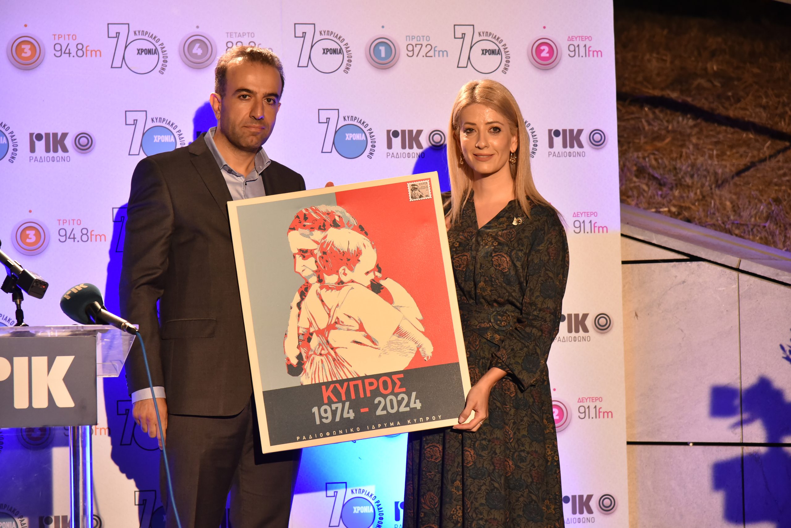 Με το πέρας της παρουσίασης του ιστορικού επετειακού λευκώματος, ο Πρόεδρος του Δ.Σ. κ. Γιώργος Κέντας πρόσφερε στην Πρόεδρο της Βουλής αφίσα, τυπωμένη σε καμβά, που αποτελεί την πρώτη από μια σειρά ενεργειών και δράσεων ενημέρωσης που το ΡΙΚ διεξάγει, με αφορμή την συμπλήρωση 50 χρόνων από την τουρκική ειβολή και κατοχή κάτω από τον γενικό τίτλο «ΚΥΠΡΟΣ: 1974-2024».