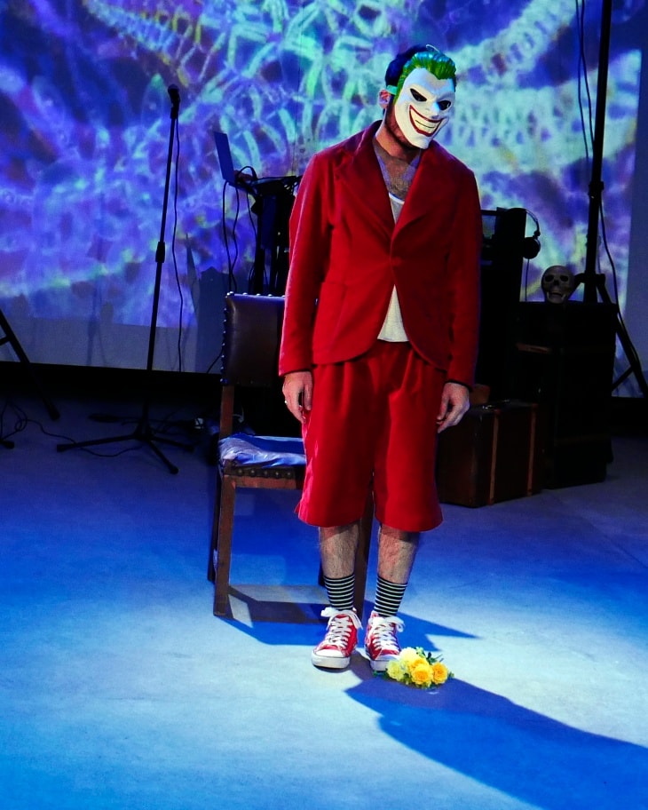 Η δραματουργική αφετηρία της παράστασης οργανώνεται γύρω από ένα φαινομενικά απλό, αλλά βαθιά αποσταθεροποιητικό συμβάν, την επιστροφή μιας τραγουδίστριας κλασικού ρεπερτορίου στο σπίτι της και την αιφνίδια συνάντησή της με έναν άγνωστο νεαρό, ο οποίος έχει ήδη εγκατασταθεί εκεί, κρατώντας μια κιθάρα ως μοναδικό σχεδόν έρεισμα ταυτότητας. Το απρόσμενο αυτό γεγονός λειτουργεί ως καταλύτης για την ανάπτυξη μιας σκηνικής συνθήκης που κινείται στο όριο του σουρεαλιστικού και του κωμικοτραγικού, μετατρέποντας την καθημερινότητα σε πεδίο υπαρξιακής δοκιμασίας. Η συνύπαρξη των δύο προσώπων δεν οργανώνεται με βάση τη συμφιλίωση των αντιθέτων, αλλά μάλλον μέσα από τη συνεχή τους τριβή. Το παλιό και το νέο, η λογική και το ένστικτο, ο έλεγχος και η παρόρμηση αναδύονται ως ισοδύναμες και αλληλοδιεισδύουσες δυνάμεις.