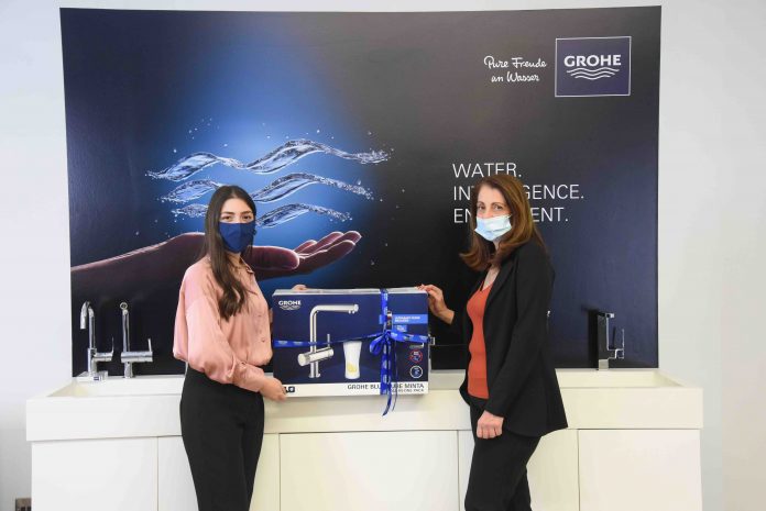 Η Έλενα Γαβριήλ από τη Λεμεσό ήταν η μεγάλη νικήτρια της κλήρωσης που πραγματοποιήθηκε την τελευταία ημέρα της εκδήλωσης GROHE BLUE “Made for Cyprus Water” στις 23/12/21 στο The Mall of Cyprus, μπροστά από επισκέπτες του εμπορικού κέντρου καθώς εκπροσώπους της GROHE Κύπρου που ήταν παρόντες.