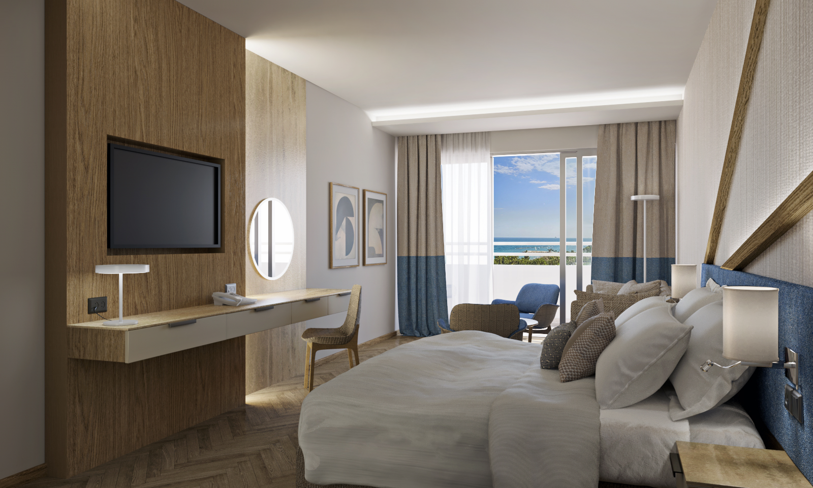 Η αισθητική της Μεσογείου είναι διάχυτη σε όλα τα ανακαινισμένα δωμάτια του Mediterranean, που διαχωρίζονται σε deluxe bedrooms, superior bedrooms, luxury studios, family rooms και suites, θυμίζοντας τοπογραφία του νησιού. Οι απαλές αποχρώσεις του μπεζ της άμμου δημιουργούν μια αίσθηση ηρεμίας, ενώ οι αποχρώσεις του μπλε μιμούνται τα κύματα που περιβάλλουν την ακτή. Αντίστοιχα, ο στρατηγικά τοποθετημένος φωτισμός πάνω από το κρεβάτι θυμίζει τον ήλιο που ανατέλλει πάνω από τον ορίζοντα.