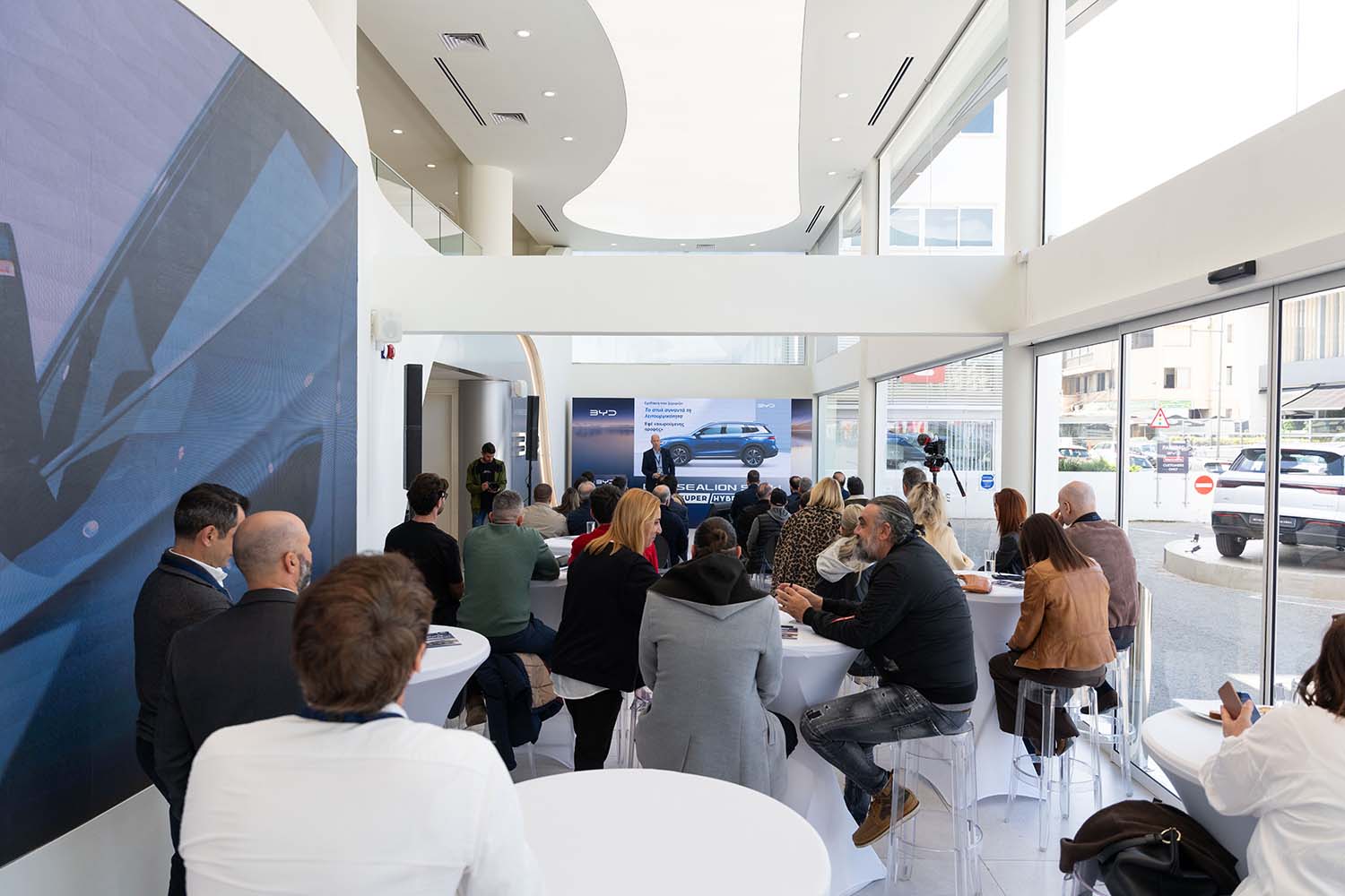 Την Πέμπτη 19 Φεβρουαρίου, πραγματοποιήθηκε η πρώτη επίσημη παρουσίαση του νέου BYD SEALION 5 DMi στην Κύπρο. Η εκδήλωση φιλοξενήθηκε στο εντυπωσιακό showroom της BYD στη Λευκωσία, έναν πρότυπο, σύγχρονο και καινοτόμο χώρο, ο οποίος αποτελεί τον πρώτο στην Ευρώπη που υλοποιείται με τις νέες, παγκόσμιες προδιαγραφές του Brand. Παρουσία δημοσιογράφων, εκπροσώπων των media, influencers και φίλων του αυτοκινήτου, οι παρευρισκόμενοι είχαν την ευκαιρία να γνωρίσουν από κοντά το νέο Super Hybrid SUV σε ένα περιβάλλον υψηλής τεχνολογίας.