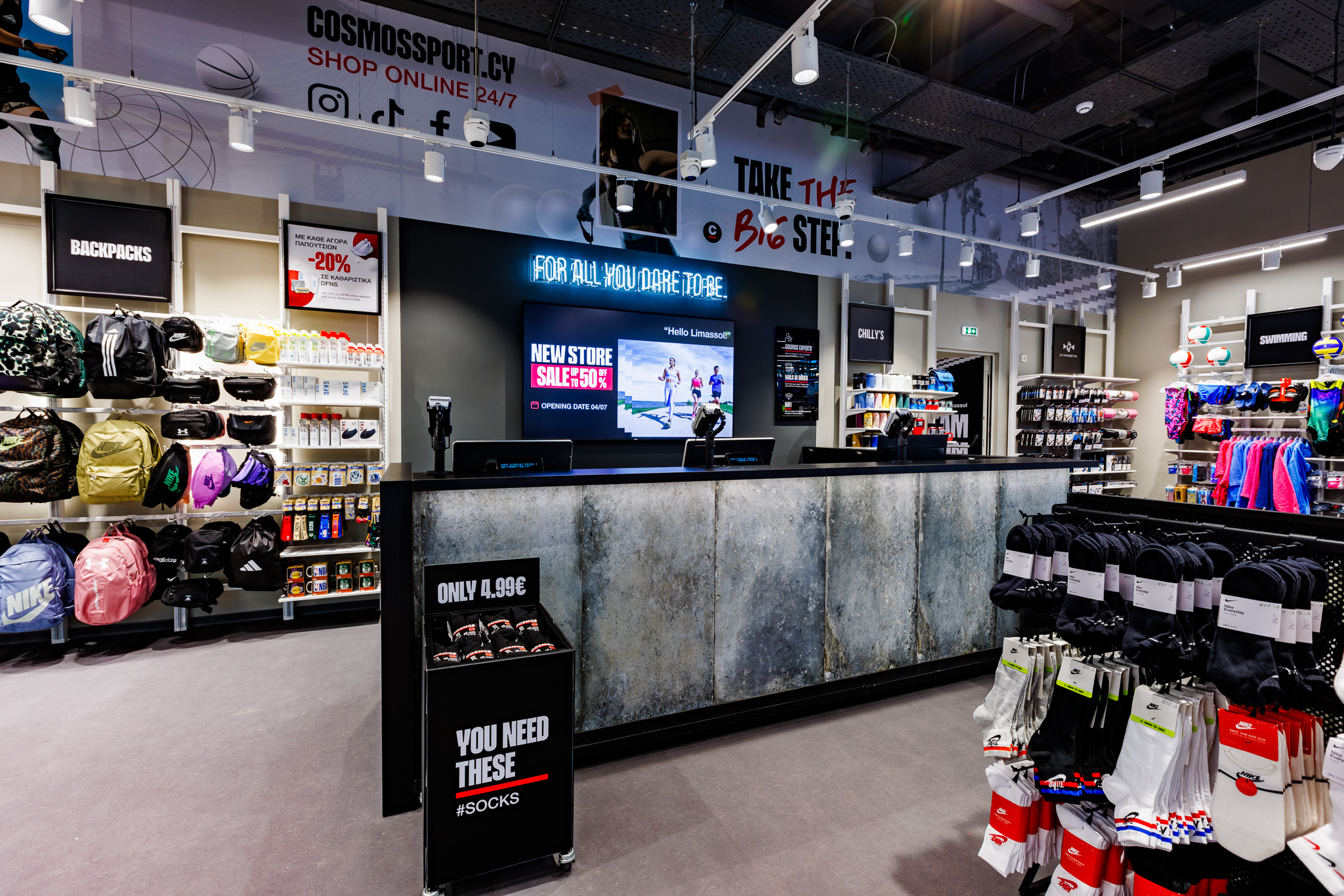 Το νέο εντυπωσιακό κατάστημα στη Λεμεσό είναι το τέταρτο φυσικό κατάστημα της Cosmos Sport και το πρώτο στην πόλη, με τα υπόλοιπα να βρίσκονται στην Λευκωσία και στην Πάφο. Το flagship κατάστημα της Cosmos Sport στη Λεμεσό βρίσκεται στον πρώτο όροφο του My Mall Limassol, και εκεί μπορεί ο καθένας να ανακαλύψει τον πιο εξειδικευμένο εξοπλισμό για τα αγαπημένα του sport! Η ευρεία γκάμα προϊόντων της Cosmos Sport είναι πάντα διαθέσιμη 24/7 και στο online κατάστημα www.cosmossport.cy