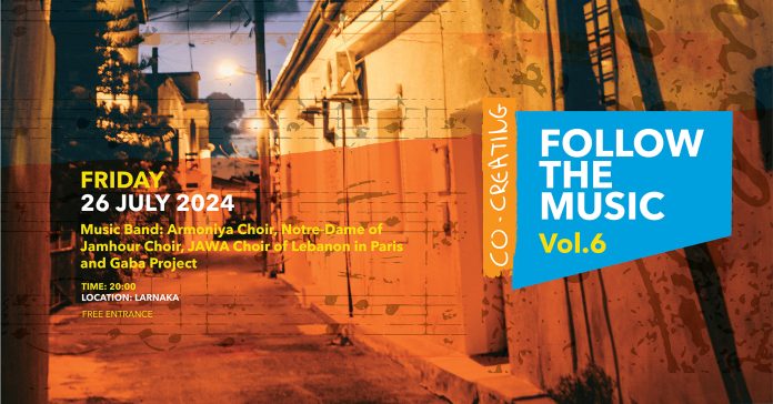 Το Follow the Music επανέρχεται στις 26 Ιουλίου, στην 6η κατά σειρά εκδοχή του, με ακόμα μια φανταστική συναυλία σε ένα απροσδόκητο σημείο της Λάρνακας. Αυτή τη φορά, η πολυπολιτισμική χορωδία Αρμονία που εδρεύει στη Λάρνακα, υπό την καθοδήγηση της Rania Al Najjar, συμπράττει με δύο χορωδίες από τον Λίβανο, τη Notre-Dame of Jamhour Choir και τη JAWA Choir of Lebanon in Paris και μας ταξιδεύουν σε διάφορες μουσικές του κόσμου. Το μουσικό συναπάντημα εμπλουτίζουν οι Gaba Project με το handpan, τα κρουστά και τη λύρα τους. Το εν λόγω ντουέτο, αποτελούμενο από τη Χριστίνα Πολυκάρπου και τον Βασίλη Βασιλείου, επικεντρώνεται στον πειραματισμό και τις νέες μουσικές προσεγγίσεις.