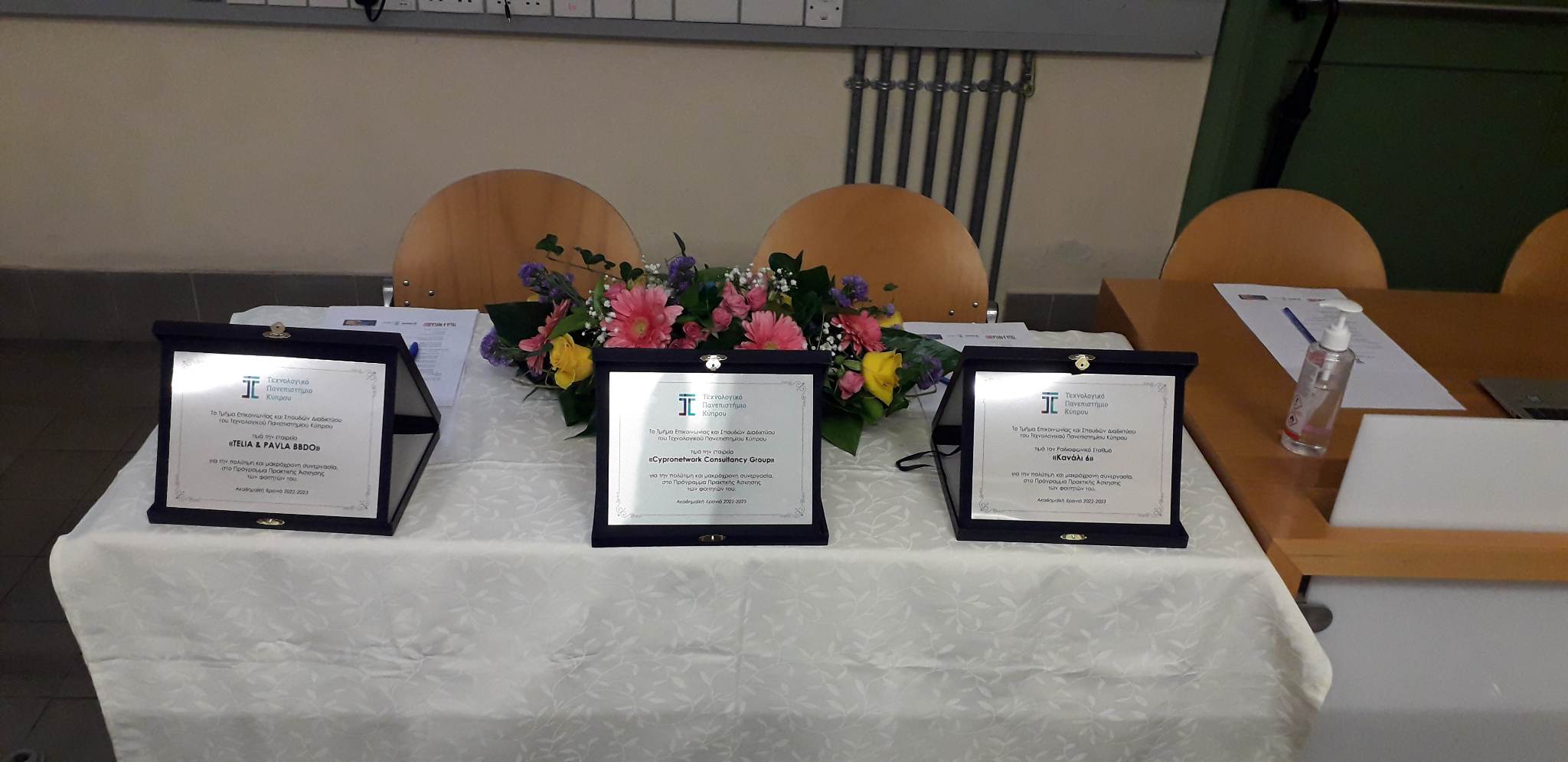 Στον χαιρετισμό τους τόνισαν, μεταξύ άλλων, τη σημασία της εκδήλωσης «για τη μελλοντική πορεία των φοιτητών τόσο κατά τη διάρκεια της ακαδημαϊκής τους φοίτησης στο Τεχνολογικό Πανεπιστήμιο Κύπρου όσο και στη μετέπειτα αποφοίτηση και ένταξή τους στην αγορά εργασίας».