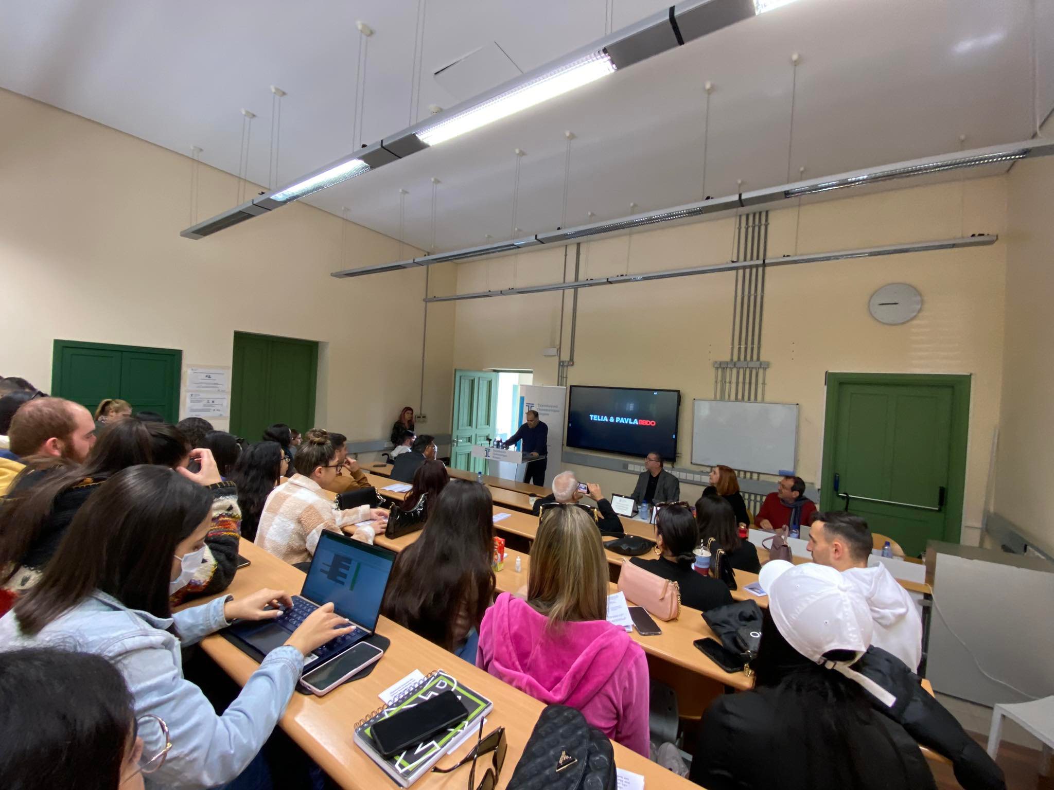Τη δική τους εμπειρία από το μάθημα της Πρακτικής Άσκησης μοιράστηκαν ο φοιτητής και οι φοιτήτριες του Τμήματος ΕΣΔ, Θεόδωρος Τσολάκης (Super Sport FM), Βερόνικα Παναγιώτου (MindLab) και Κατερίνα Καρακασίδη (Cyric).