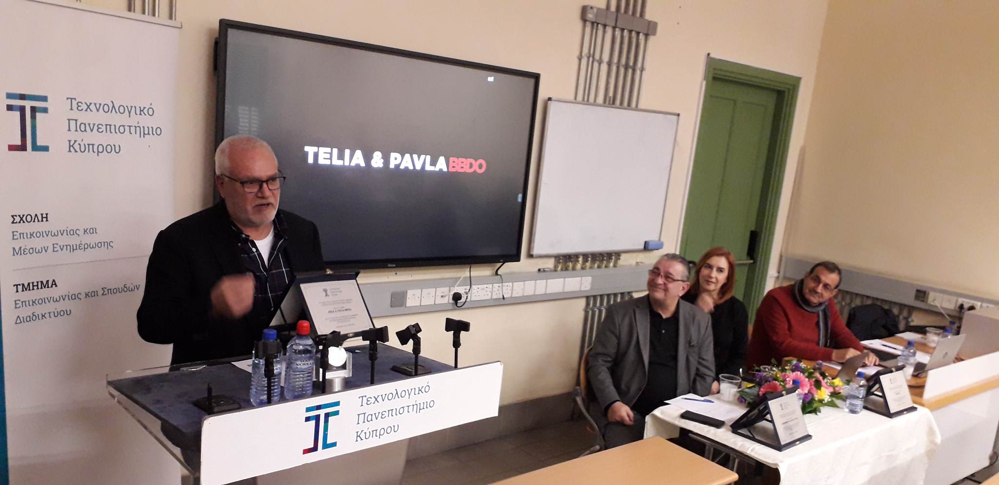 Τα δεδομένα που επικρατούν σήμερα στους πιο πάνω επαγγελματικούς τομείς, ανέλυσαν η κα Αναστασία Τσάμη και ο Διευθύνων Σύμβουλων κ. Στέλιος Αναστασιάδης (Τelia & Pavla BBDO), ο κ. Χρήστος Μιχαηλίδης (Εκτελεστικός Πρόεδρος Cypronetwork Consultancy Group) και ο κ. Μιχάλης Παπαευαγόρου (Διευθυντής, Ραδιοφωνικός Σταθμός Κανάλι 6), επισημαίνοντας ότι οι ευκαιρίες που ανοίγονται για τους/τις απόφοιτους/τες του Τμήματος ΕΣΔ είναι εξαιρετικά μεγάλες.