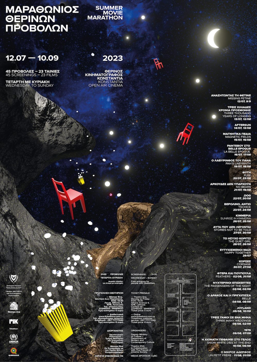 Το Τμήμα Νεότερου και Σύγχρονου Πολιτισμού του Υφυπουργείου Πολιτισμού και το Θέατρο Ένα ανακοινώνουν την έναρξη του Μαραθωνίου Θερινών Προβολών 2023 που πραγματοποιείται, όπως κάθε καλοκαίρι, στον Θερινό Κινηματογράφο της Λευκωσίας «Κωνστάντια».