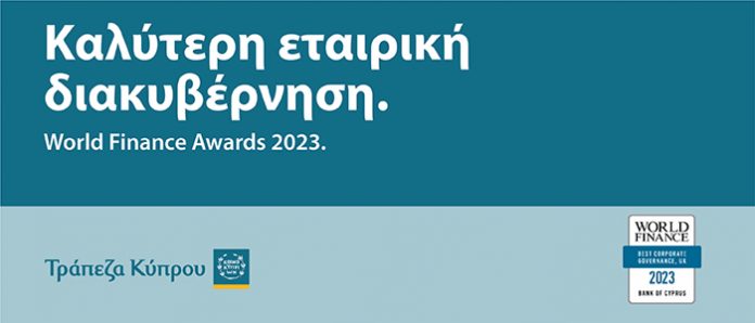 Στην Τράπεζα Κύπρου το βραβείο Καλύτερης Εταιρικής Διακυβέρνησης (Best Corporate Governance) στο Ηνωμένο Βασίλειο, από τον οργανισμό World Finance.