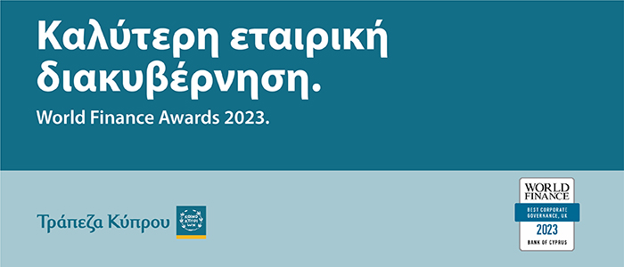 Στην Τράπεζα Κύπρου το βραβείο Καλύτερης Εταιρικής Διακυβέρνησης (Best Corporate Governance) στο Ηνωμένο Βασίλειο, από τον οργανισμό World Finance.