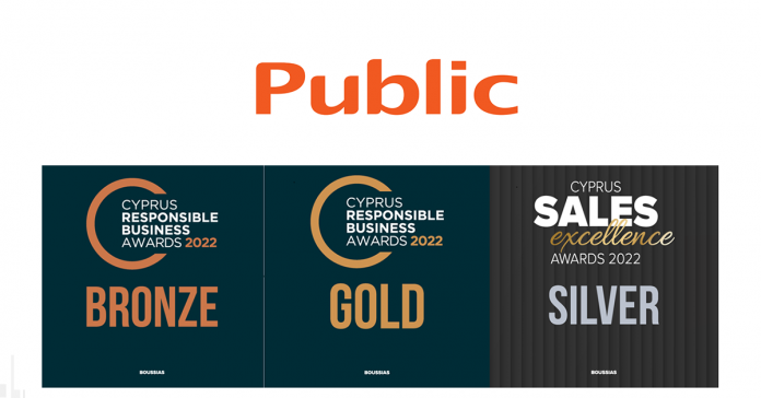 Οι διακρίσεις των Public στα «Βραβεία Υπεύθυνης Επιχειρηματικότητας Κύπρου 2022» πιστοποιούν τη δέσμευσή τους στις αρχές της αειφορίας, της υπεύθυνης Επιχειρηματικότητας και της βιώσιμης ανάπτυξης.