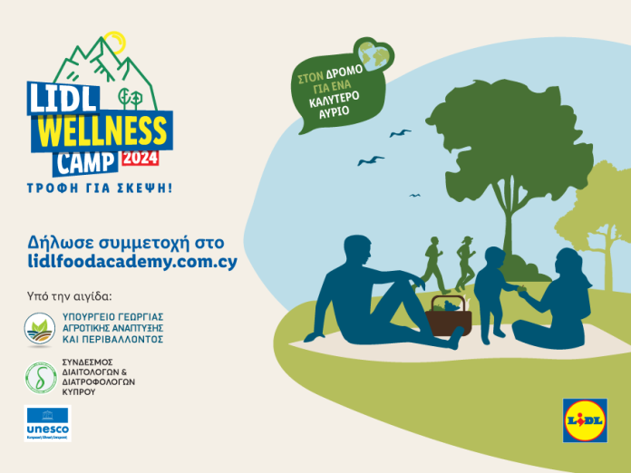Η Lidl Κύπρου επιστρέφει για 5η συνεχή χρονιά με το πολυαναμενόμενο Lidl Wellness Camp, που έχει προγραμματιστεί για τις 14-15 Σεπτεμβρίου 2024, στο γραφικό Rodon Mount Hotel & Resort στον Αγρό. Η διήμερη εκδήλωση διοργανώνεται στο πλαίσιο της Παγκόσμιας Ημέρας Φαγητού, υπό την αιγίδα του Υπουργείου Γεωργίας, Αγροτικής Ανάπτυξης και Περιβάλλοντος, της Κυπριακής Εθνικής Επιτροπής UNESCO και του Συνδέσμου Διαιτολόγων και Διατροφολόγων Κύπρου.